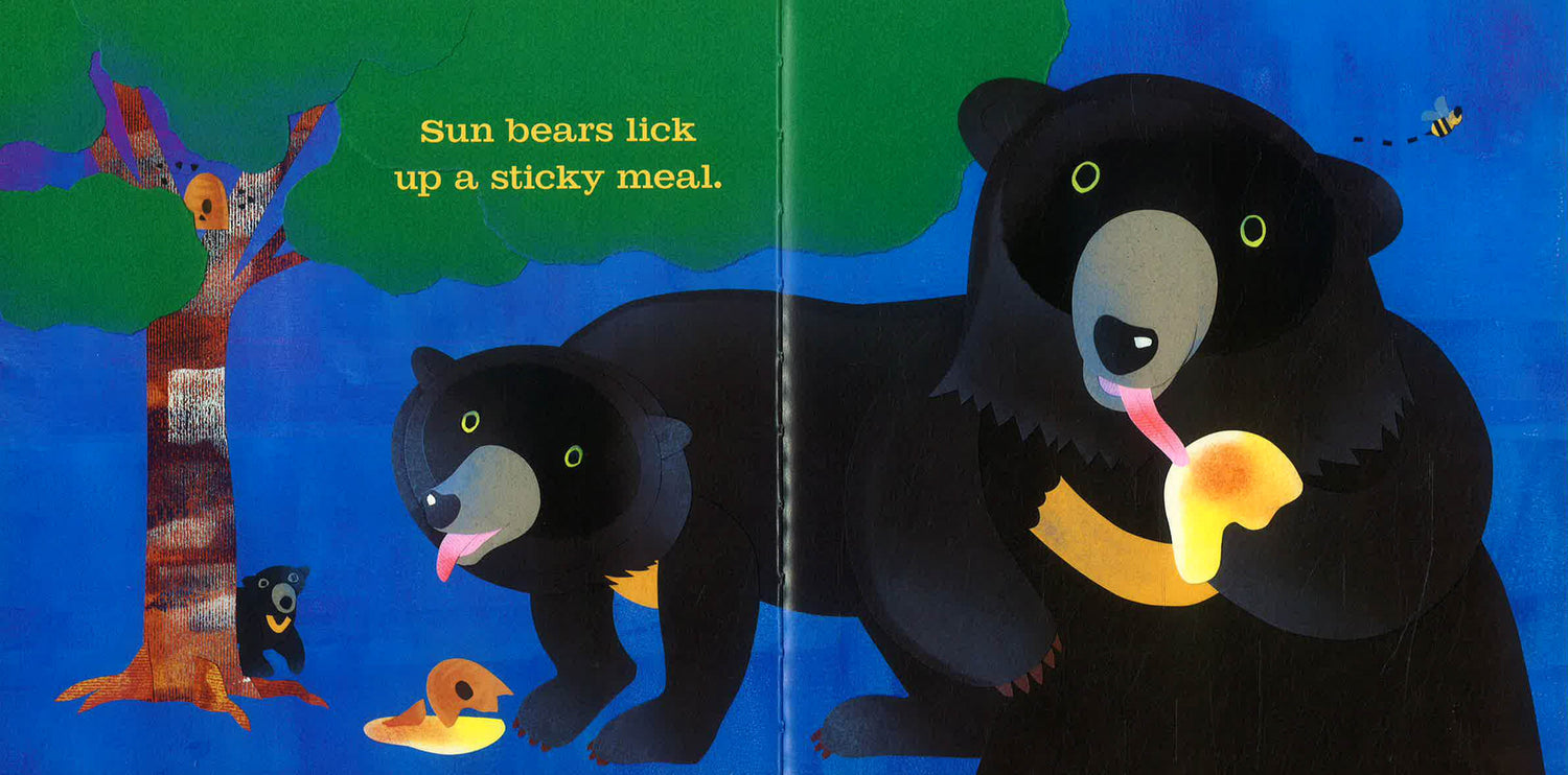 Everyone's favorite bears (and some you may have never met before) fish, munch, dive, cuddle, and climb their way through this playful romp. The simple rhyming text is enhanced with fun facts about new cubs (pandas are born no bigger than a stick of butter!) and bears around the world (the spectacled bear is the only species native to South America), while Bob Barner's richly textured paper collage illustrations bring the bears of the world to life. Budding ursinologists will bearly be able to contain themselvesthis book is sure to leave them roaring for more!