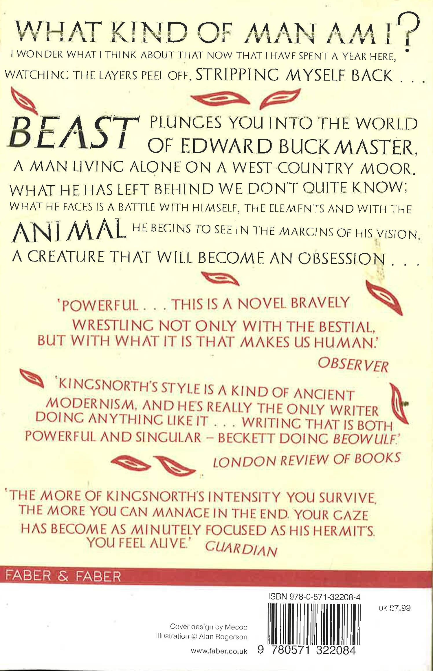 Beast plunges you into the world of Edward Buckmaster, a man living alone on a west-country moor. What he has left behind we don't quite know; what he faces is a battle with himself, the elements and with the animal he begins to see in the margins of his vision. A creature that will become an obsession . . .