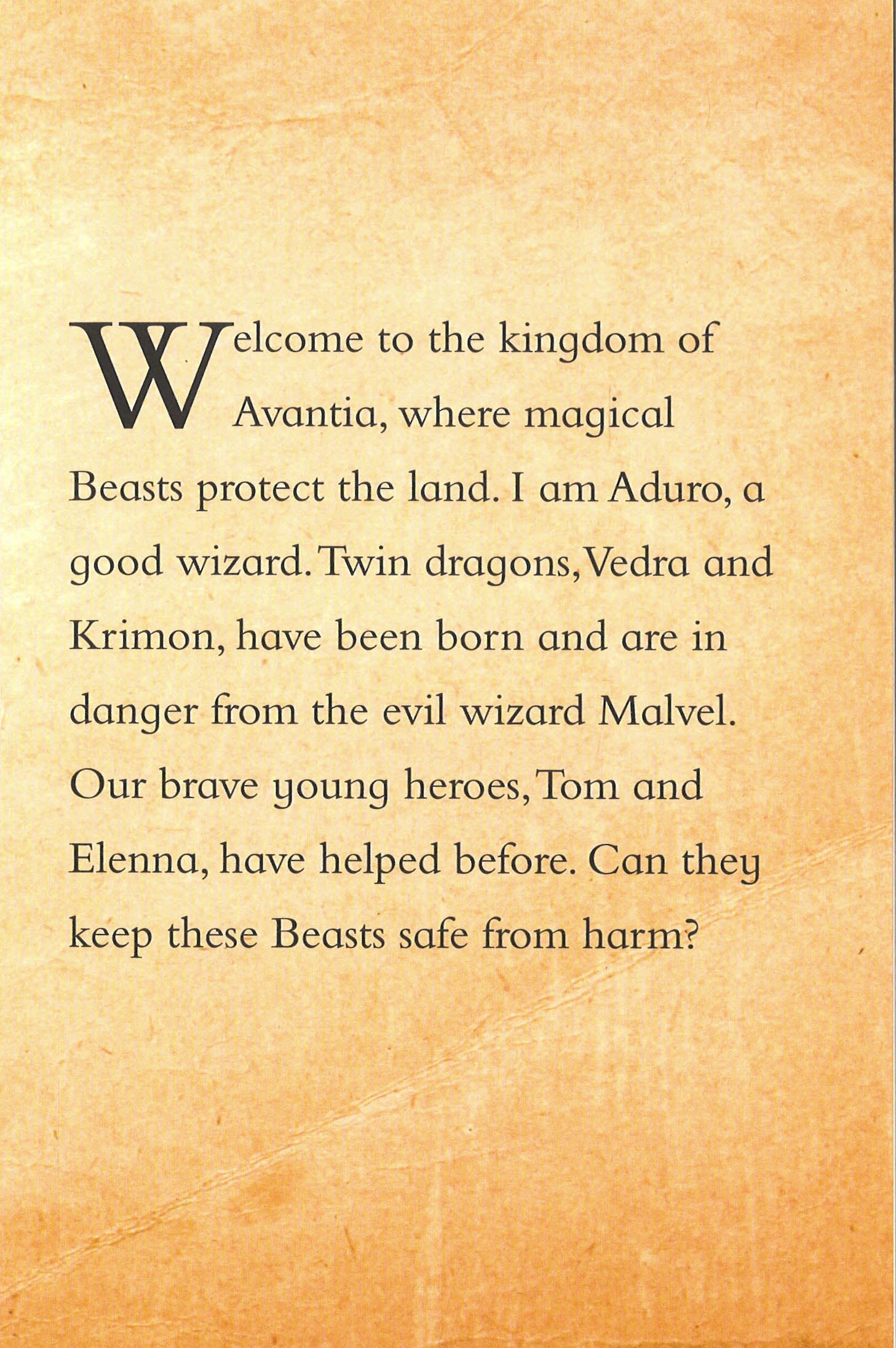 New Beasts have been created in Avantia - twin dragons Vedra and Krimon. But the Wizard Malvel plans to capture them, so Tom must take the dragons into hiding. Can Tom save the twin Beasts from the wizard's evil spell?