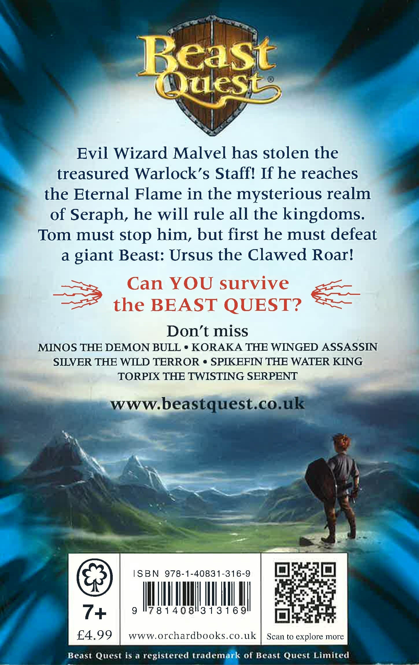 Evil Wizard Malvel has stolen the treasured Warlock's Staff! If he reaches the Eternal Flame in the mysterious realm of Seraph, he will rule all the kingdoms. Tom must stop him, but first he must defeat a giant Beast: Ursus the Clawed Roar!
