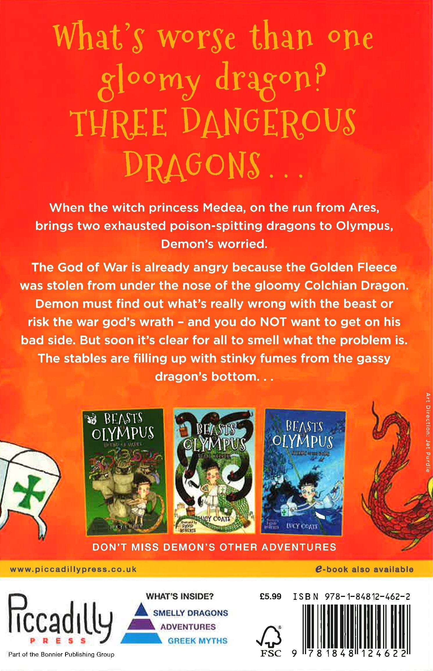 Demon, Official Stableboy to the Gods, faces his toughest challenge yet . . . a very farty dragon! Fresh from his underwater adventures in Poseidon's realm, Demon was looking forward to returning to the Stables of the Gods and catching up with Arnie the Griffin, Doris the Hydra and the other magical beasts. But there's no such thing as an ordinary day up on Olympus. There's the small problem of a runaway princess hiding out in the stables with her poison-spitting flying dragons. And Ares is on the warpath - his Golden Fleece has been stolen from the poorly Colchian Dragon who was supposed to be guarding it. Demon's charged with curing the beast but it's got rather an embarrassing ailment and soon the stables are so stinky the other beasts are overcome by fumes from the windy dragon's bottom. How will Demon clean up THIS mess?
