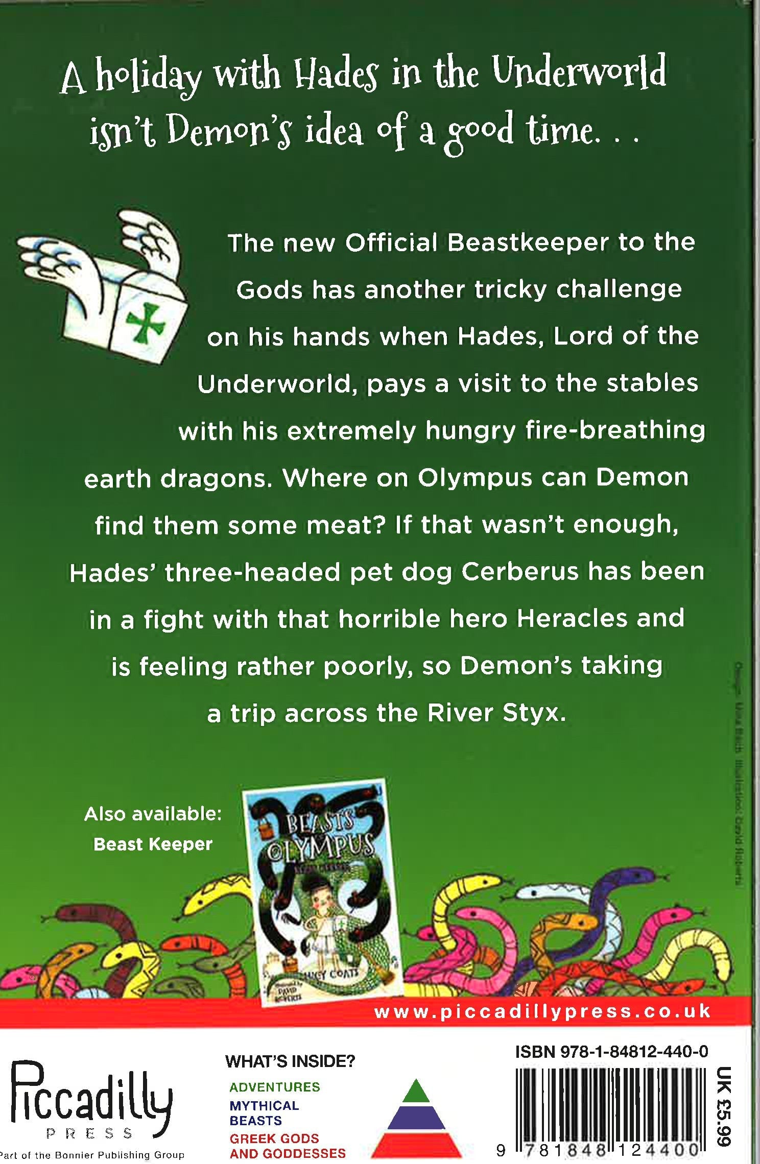 It's official - Demon is stableboy to the creatures of the gods! Demon is sick. He ate too many honey cakes at the party celebrating his new job as beast keeper to the gods. But the animals still need to be cared for and there is a visitor coming to the stables who may or may not be the goddess Hera. The last time he saw Hera she threatened to turn him into a lump of charcoal. It's just not easy being stableboy to a bunch of demanding and petulant deities. But when the visitor arrives it's not Hera but Hades, and with him he has brought some rather dangerous earth dragons who need meat. Where on Olympus can he find meat? If that task wasn't hard enough, next Hades orders Demon to follow him to the underworld, where his pet dog, Cerberus, is feeling poorly... The second in a delightful action-packed four-book series from acclaimed writer Lucy Coats, who uses her original and funny voice to bring to life the gods, goddesses and beasts of the ancient Greek pantheon.