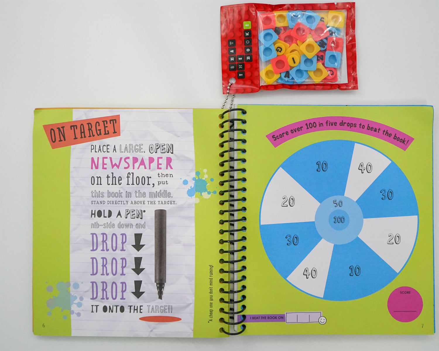 The book is filled with interactive activities and challenges. Transform the page into a mini soccer pitch and score three goals, or lay the book on the floor and drop pens until you've scored a bull's-eye Some challenges are a cinch while others require practice and skill but all are guaranteed to make you want to beat the book Kids will love using the awesome silicone cover and movable silicone pieces to complete challenges or get creative with their own ideas Do you think you can Beat This Book?