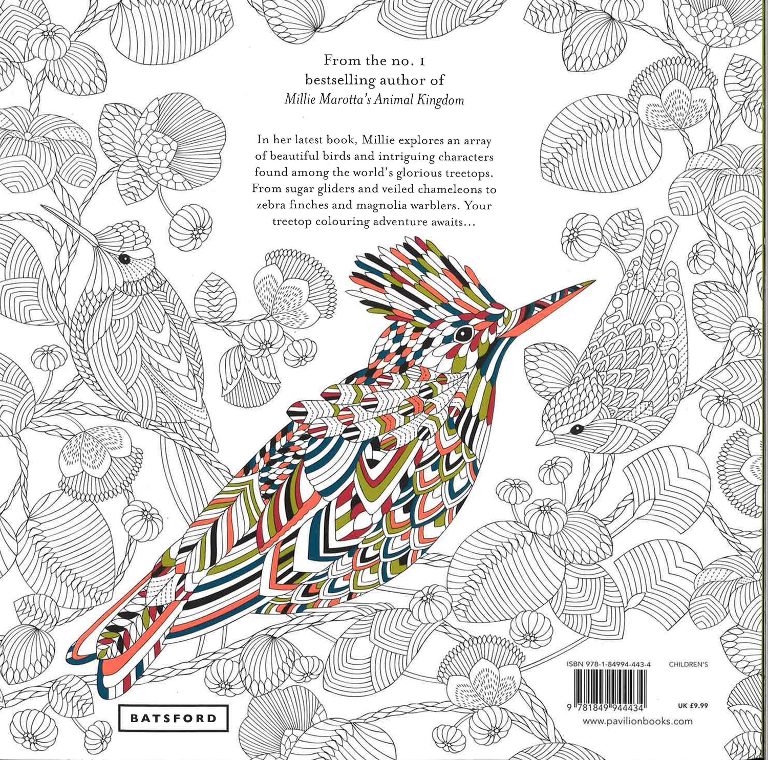 The latest colouring book by publishing sensation Millie Marotta, author of No.1 bestseller Millie Marotta's Animal Kingdom. The new book by the author of the Sunday Times bestseller, Millie Marotta's Animal Kingdom. Enter Millie's wonderful world of treetop treasures and discover the birds nesting and flying high up in the treetops, and the myriad creatures found among the branches. The enchanting illustrations to colour in range from birds such Major Mitchell's cockatoo and rose robins, to the magnolia warbler, silver-eared mesia and whiskered treeswift. As well as the beautiful birds of the world, Millie's intricate designs show the more unusual creatures residing in the treetops, such as the Amazonian milk frog, the sugar glider or the tree-kangaroo. Millie's inimitable style is treasured by thousands around the world and in this new, exciting book there are all sorts of creatures and fauna waiting to be coloured in, from tiny insects to winged beasts and scaled reptiles to buds and blossoms. The world's rainforests, woodlands and thickets are teeming with life and this book guarantees hours of relaxation and colouring fun.