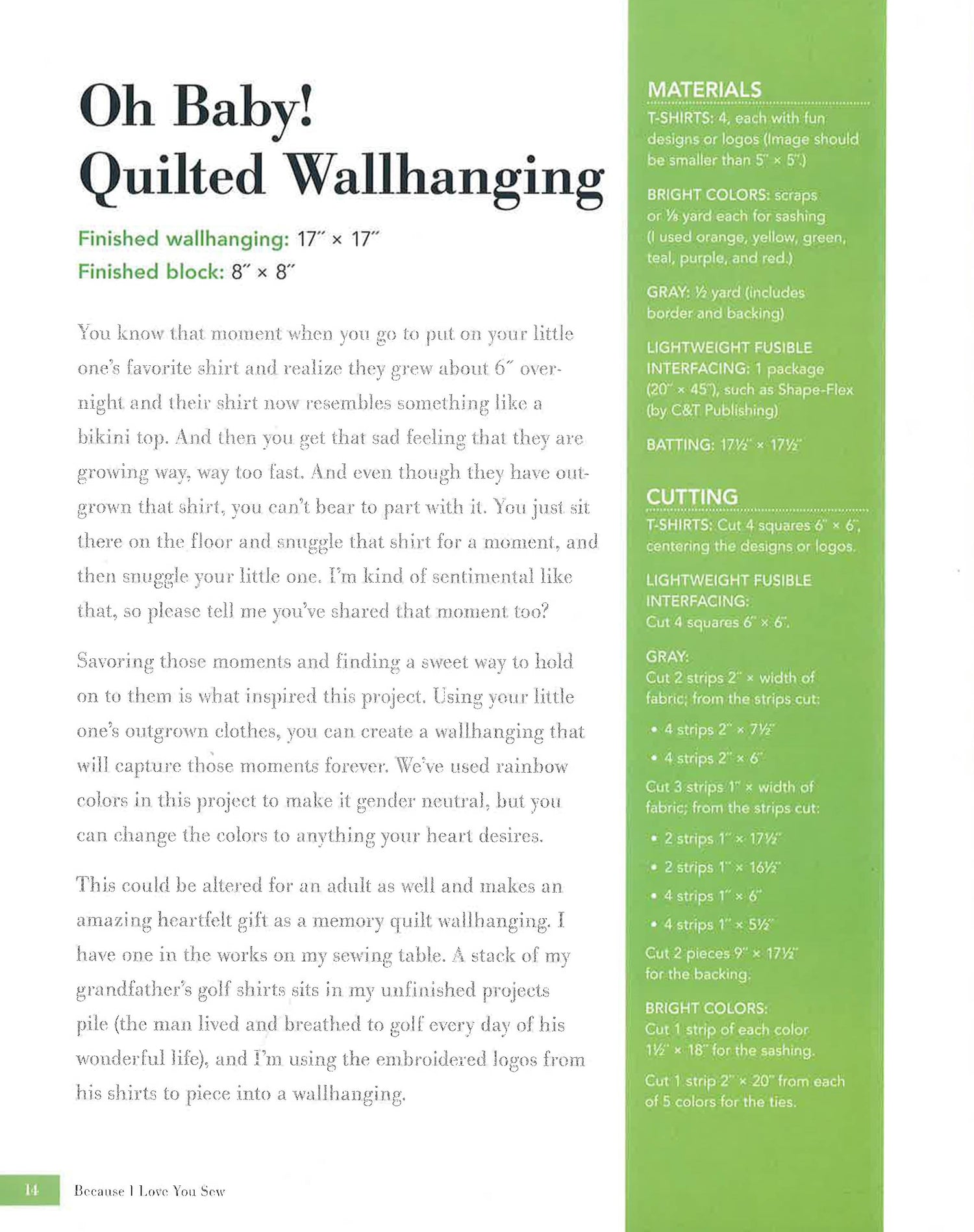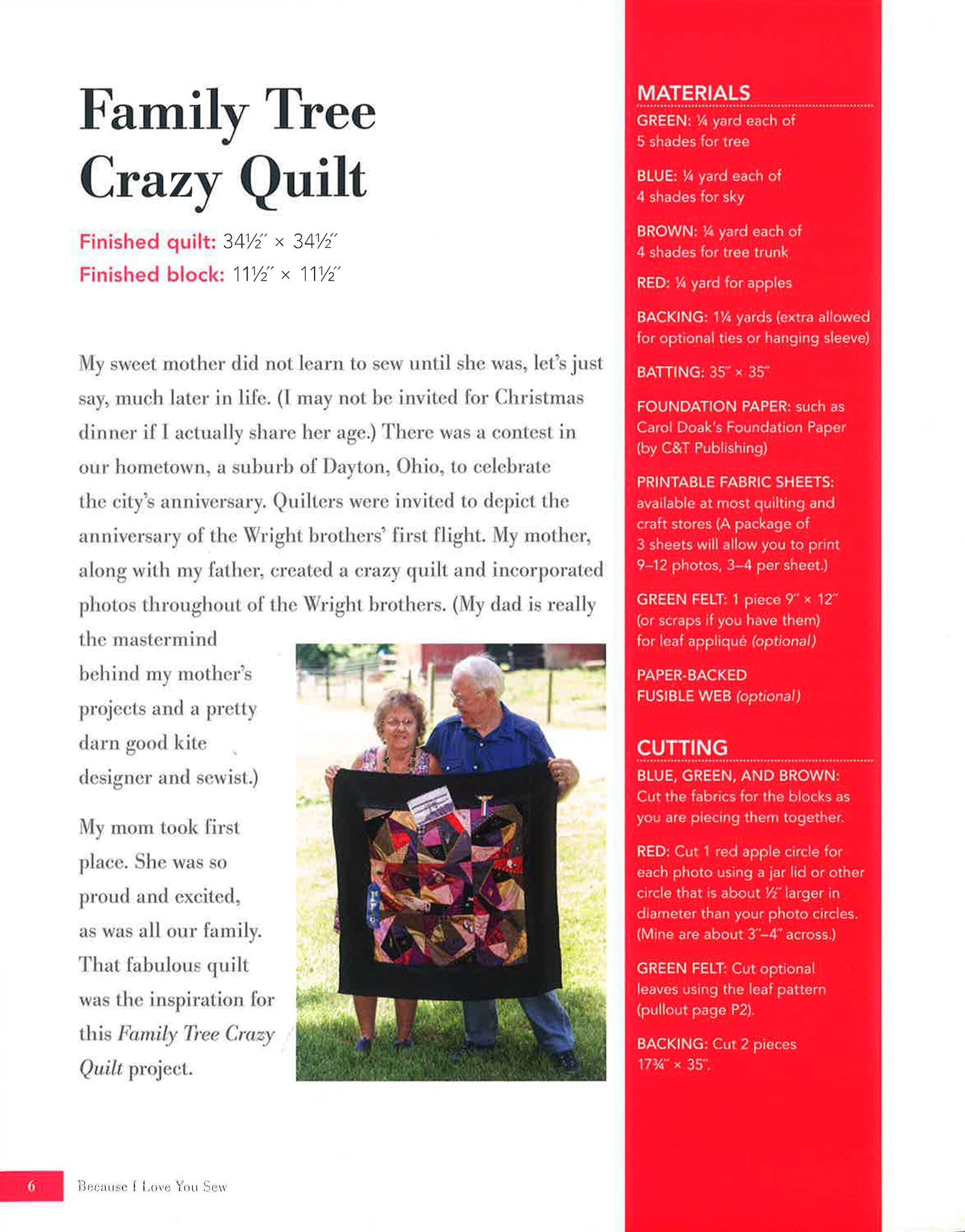 Don't just say it ..sew it! Show everyone in your life how much you love them with this gift-making book, Because I Love you Sew, by Trish Preston. Its charming collection of 17 projects features quilts, stylish totes, pretty holiday decor, and more! Includes patterns for all skill levels, step-by-step directions, and plenty of inspiring ideas for making each gift even more personal.