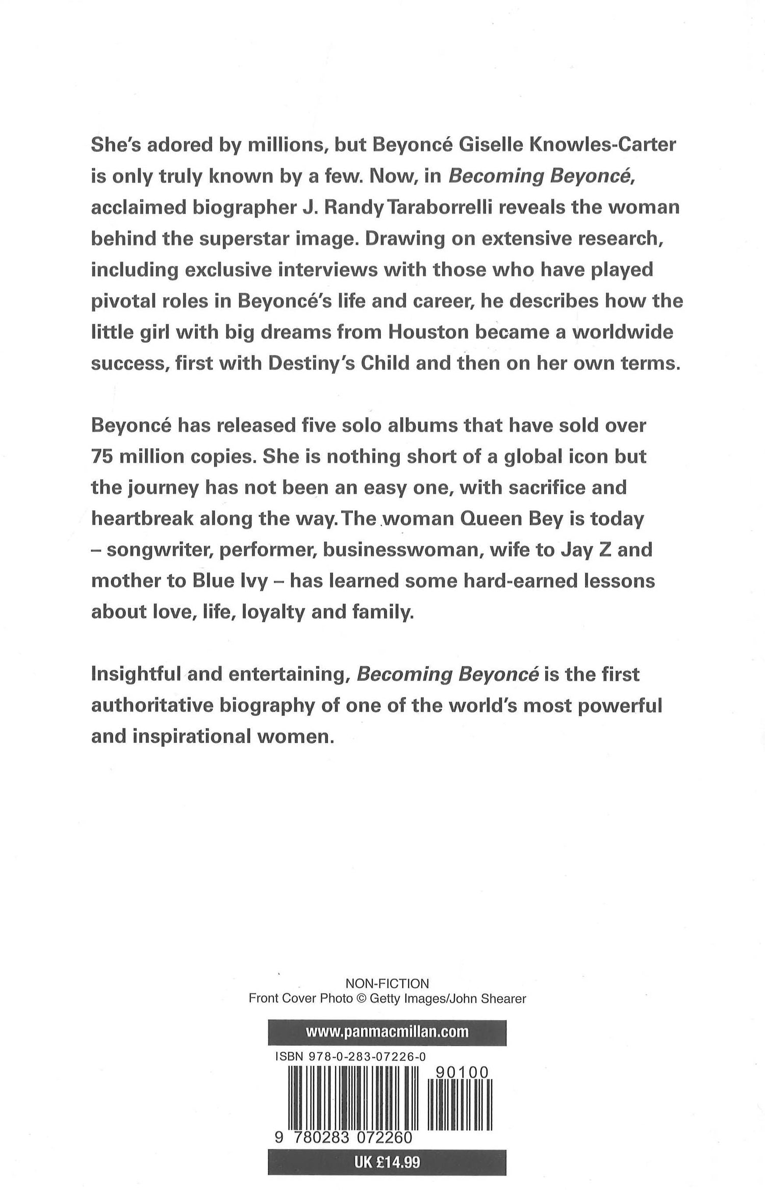 She's adored by her millions of fans, writes and performs songs that move and inspire, but Beyonce is truly known by very few. Now highly acclaimed biographer J. Randy Taraborrelli reveals the woman behind the star. In Becoming Beyonce: The Untold Story he takes us from a childhood spent performing in talent shows to finding worldwide success with her group, Destiny's Child, managed by her father Matthew. Beyonce's first solo album, Dangerously in Love, went straight to number one and she has to date released a total of five albums which have sold 75 million copies.