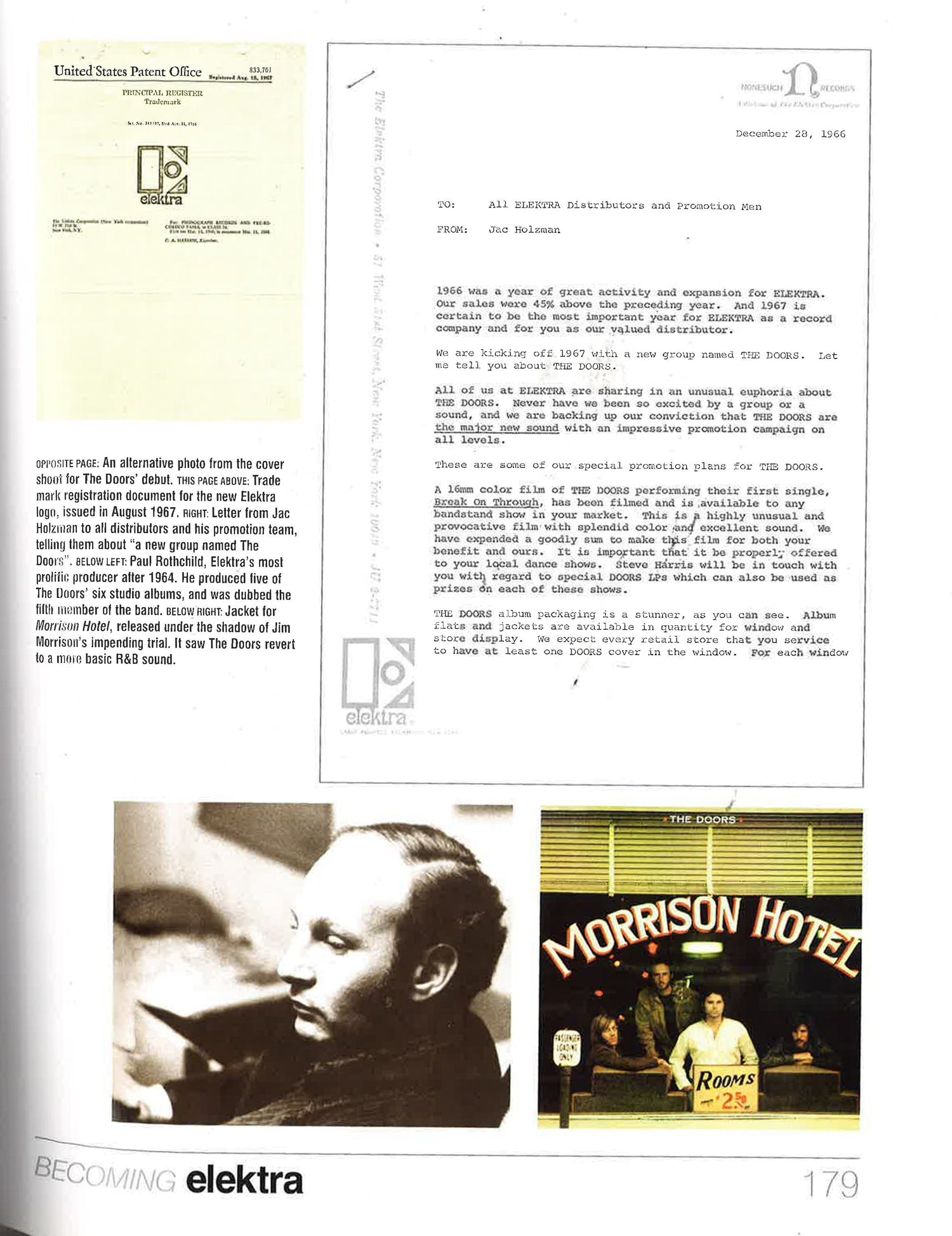 "Becoming Elektra" is an account of Elektra Records in the Jac Holzman years, from 1950 to 1973. It tells the story of Elektra's growth from a small independent folk label to a major, multi-faceted, hit making concern. Jac Holzman's role in founding and running the company is central to the story, and his capacity for lateral thinking - that led to innovations such as the first-ever sampler album, and a million-selling series of sound effects records - is a recurring theme. But the book is not just a story of one man's business success. It is also about the label's artists and the great music they produced, and other key people who gave the company its identity. "Becoming Elektra" places the label in a broad context. A gripping narrative drawing in elements of musical and cultural history, and biographies of the main participants in the story, the book opens with a pivotal moment in Elektra's history, when Holzman discovered The Doors. It then goes back to the previously untold story of Elektra in the 50s, when the label brought folk music to a wide audience through artists such as Jean Ritchie, Josh White, Theodore Bikel and Bob Gibson.