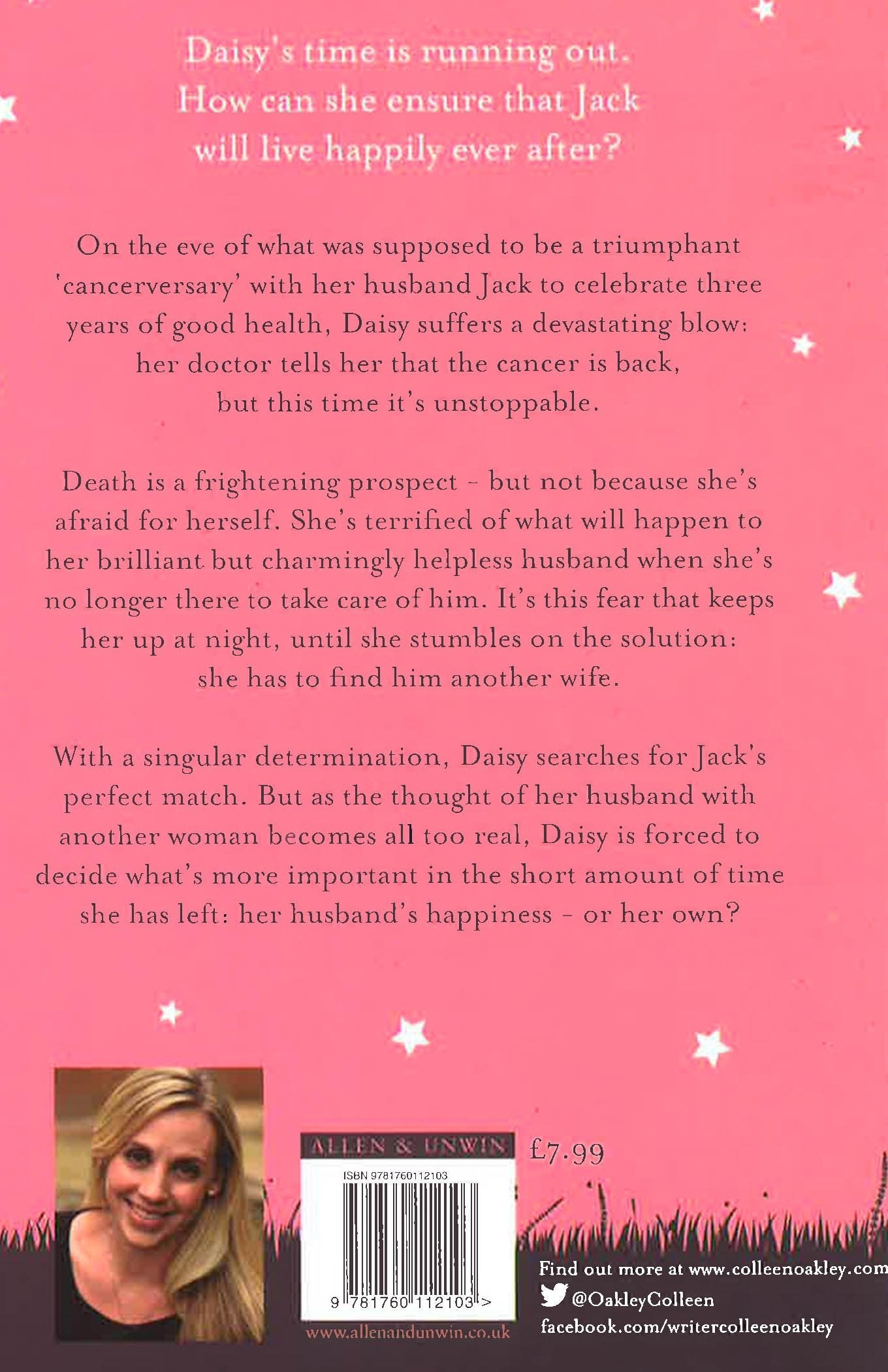 Death is a frightening prospect - but not because she's afraid for herself. She's terrified of what will happen to her brilliant but charmingly helpless husband when she's no longer there to take care of him. It's this fear that keeps her up at night, until she stumbles on the solution: she has to find him another wife.