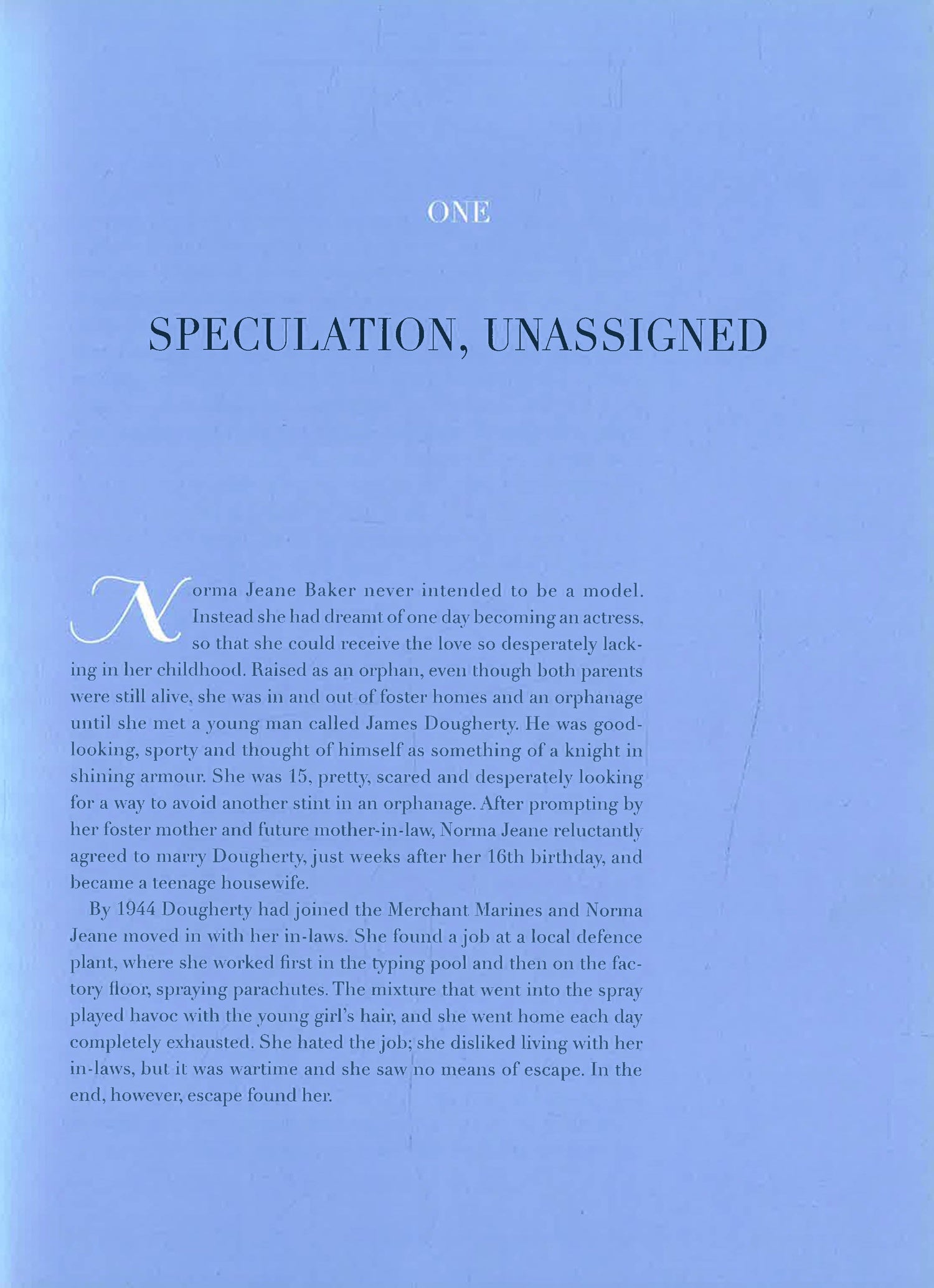 Before Marilyn tells the story of Marilyn Monroe's modelling career, during which time she was signed to the famous Blue Book Agency in Hollywood. The head of the agency, Miss Emmeline Snively, saw potential in the young woman and kept detailed records and correspondence throughout their professional relationship and beyond.