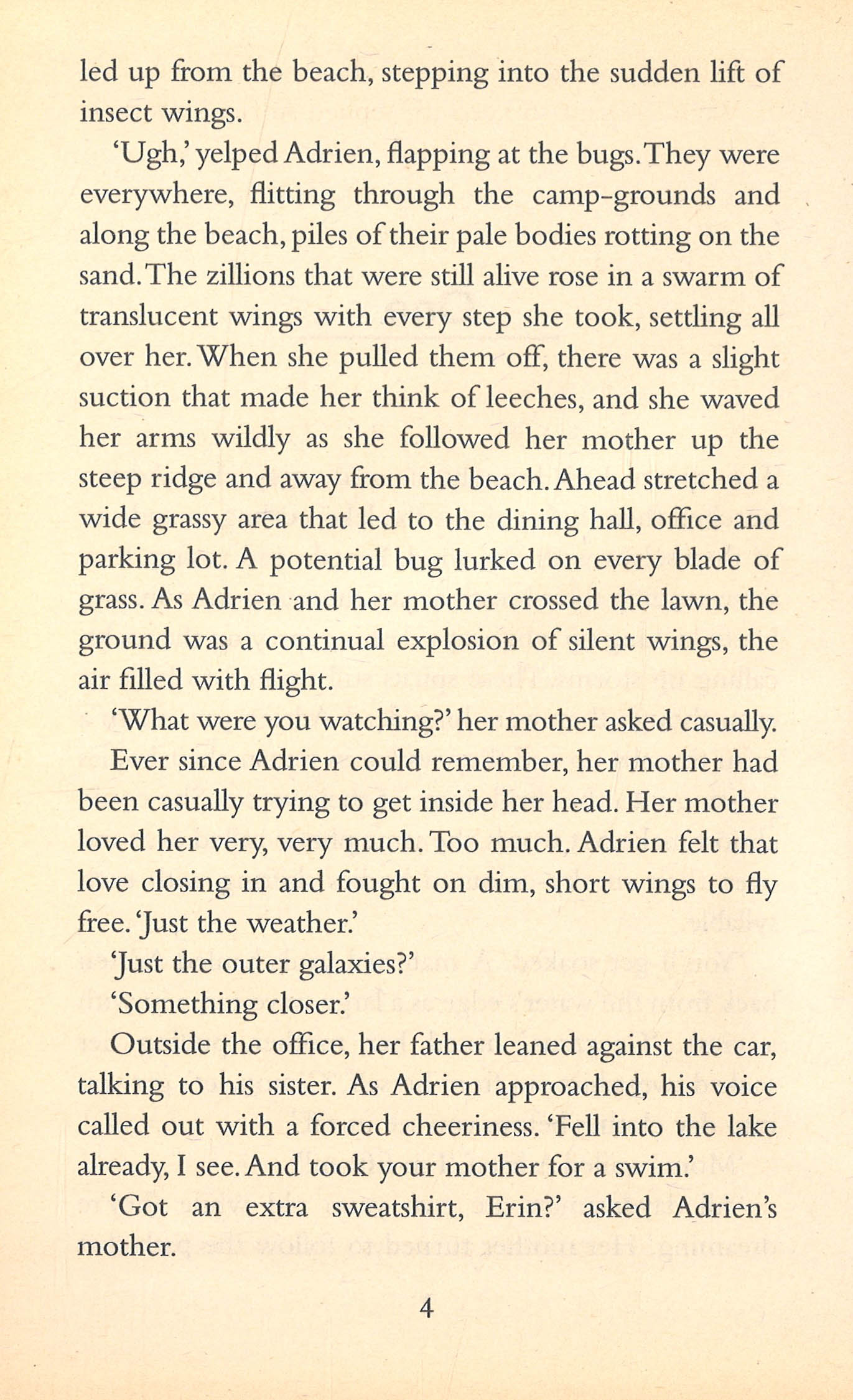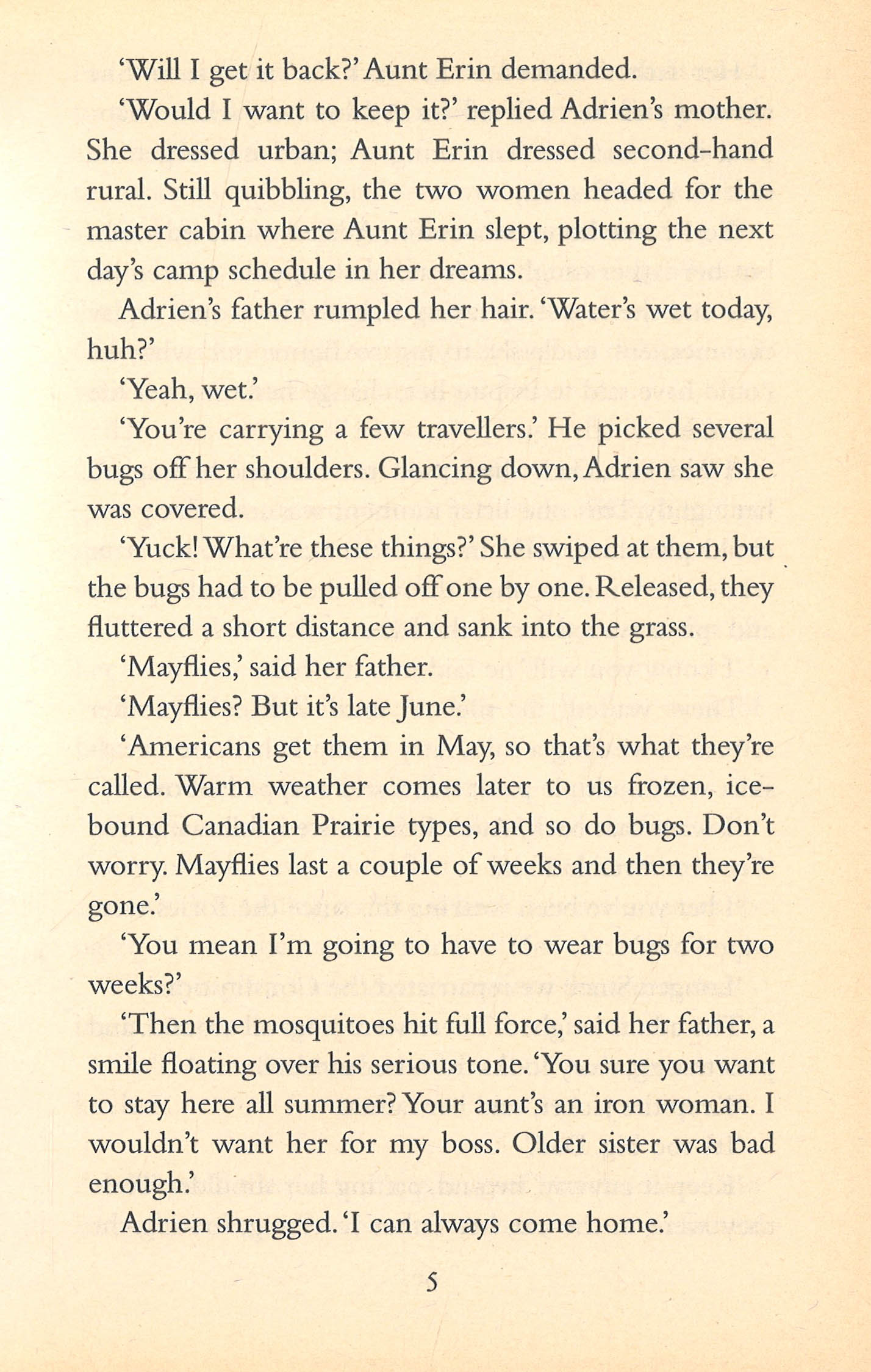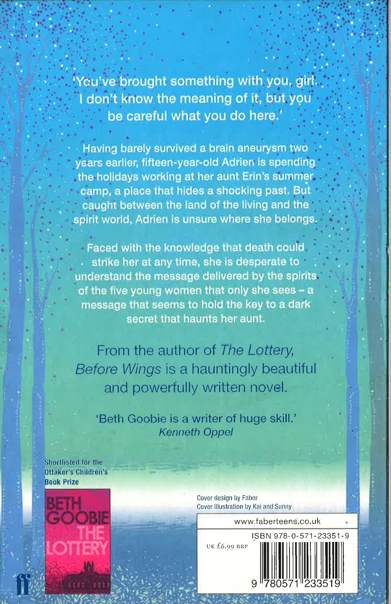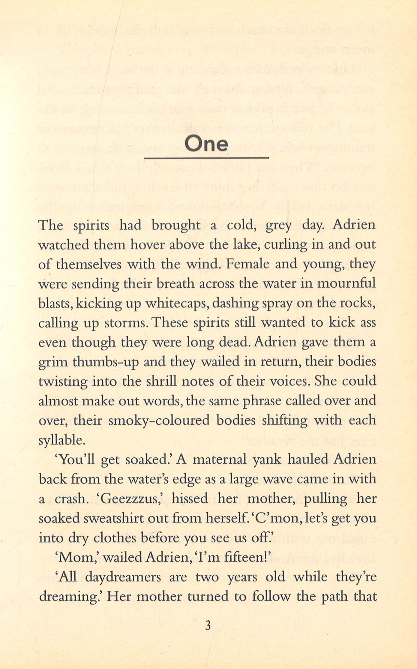 Having barely survived a brain aneurysm two years earlier, fifteen-year-old Adrien is spending the holidays working at her Aunt Erin's summer camp. But caught between the land of the living and the spirit world, she is unsure where she belongs. Faced with the knowledge that another potentially fatal aneurysm could strike her at any time, Adrien struggles to understand the message delivered by the spirits of the five young women that only she sees - a message that seems to hold the key to the dark secret that haunts her aunt.
