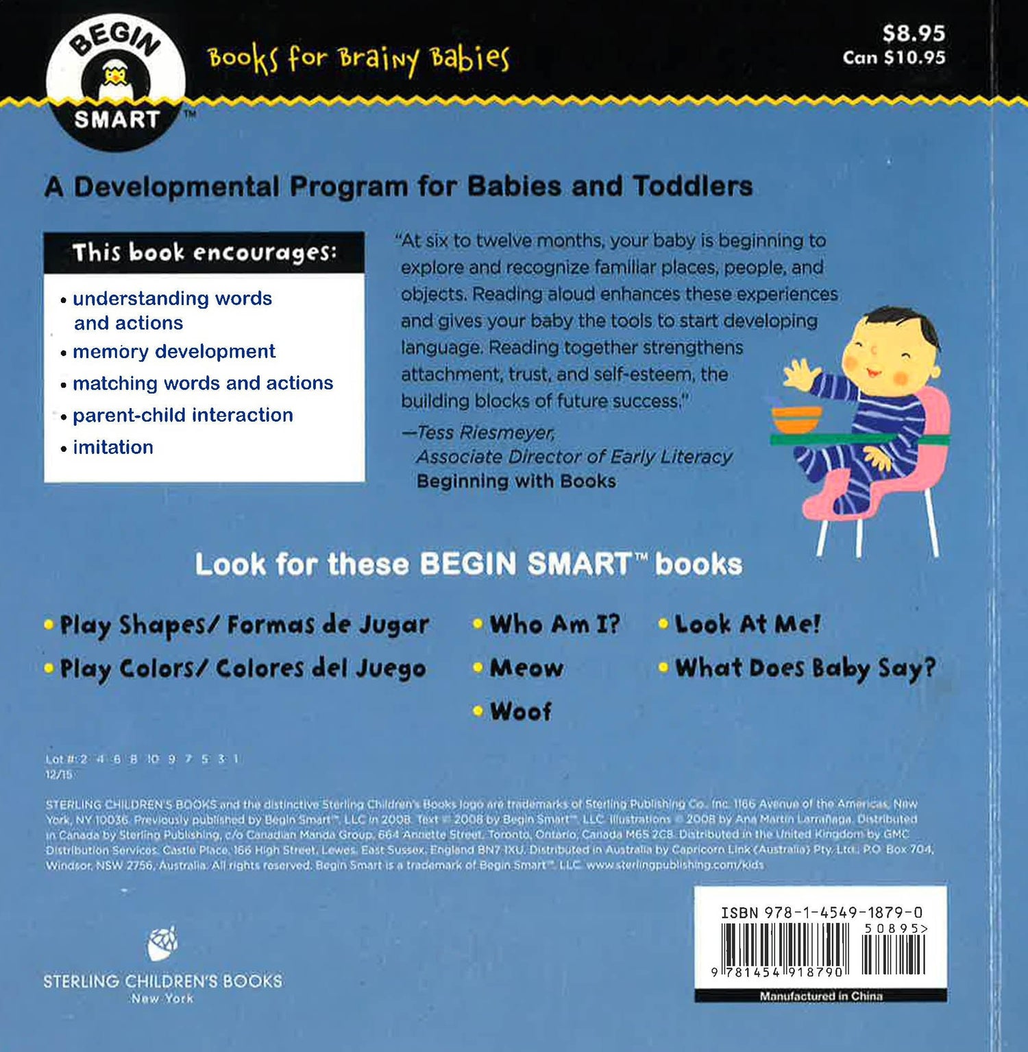 What Does Baby Do? encourages small children to physically interact by imitating the behavior of the baby on the page. "When Daddy leaves for work, baby waves bye-bye. When Grandma and Grandpa leave, baby throws a kiss." With every lift of the oversized flaps, little ones get to show off their understanding of words and actions--and expand their memory. This book encourages understanding of words and actions, memory development, matching words and meanings, parent-child relationships, and imitation. show more