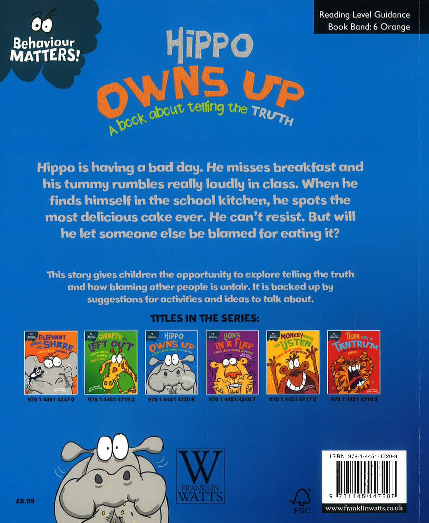 This funny, charming story is the perfect way to introduce young children to what honesty is, and help them understand the importance of owning up to your mistakes. Also included are suggestions for activities and ideas to talk through together to help children fully understand how their behaviour can impact on others.Hippo is having a bad day. It all started when he missed his breakfast. He can't concentrate in class and his tummy won't stop rumbling. And when he sees Mrs Croc's special chocolate cake, he can't resist. Now somebody else is getting the blame for eating it. Will Hippo do the right thing and tell the truth and make amends for what he's done?The Behaviour Matters series of picture books provide a gentle means of discussing emotions, boosting self-esteem and reinforcing good behaviour. Supports the Personal, Social and Emotional Development Area of Learning in the Early Years Foundation Stage, and is also suitable for use with children in KS1 and can be used to discuss values. Suitable for children under 5.