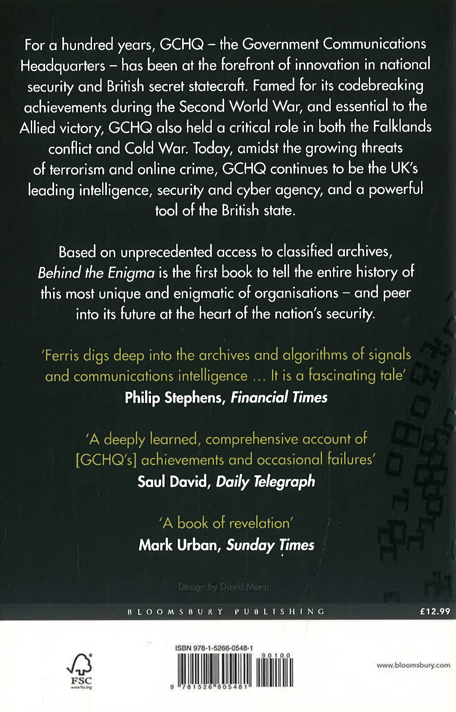 You know about MI5. You know about MI6. Now discover the untold stories behind Britain’s most secretive intelligence agency, in the first ever authorised history of GCHQ. For a hundred years, GCHQ – Government Communications Headquarters – has been at the forefront of innovation in national security and British secret statecraft. Famed for its codebreaking achievements during the Second World War, and essential to the Allied victory, GCHQ also held a critical role in both the Falklands War and Cold War. Today, amidst the growing threats of terrorism and online crime, GCHQ continues to be the UK’s leading intelligence, security and cyber agency, and a powerful tool of the British state. Based on unprecedented access to classified archives, Behind the Enigma is the first book to authoritatively tell the entire history of this most unique and enigmatic of organisations – and peer into its future at the heart of the nation’s security.