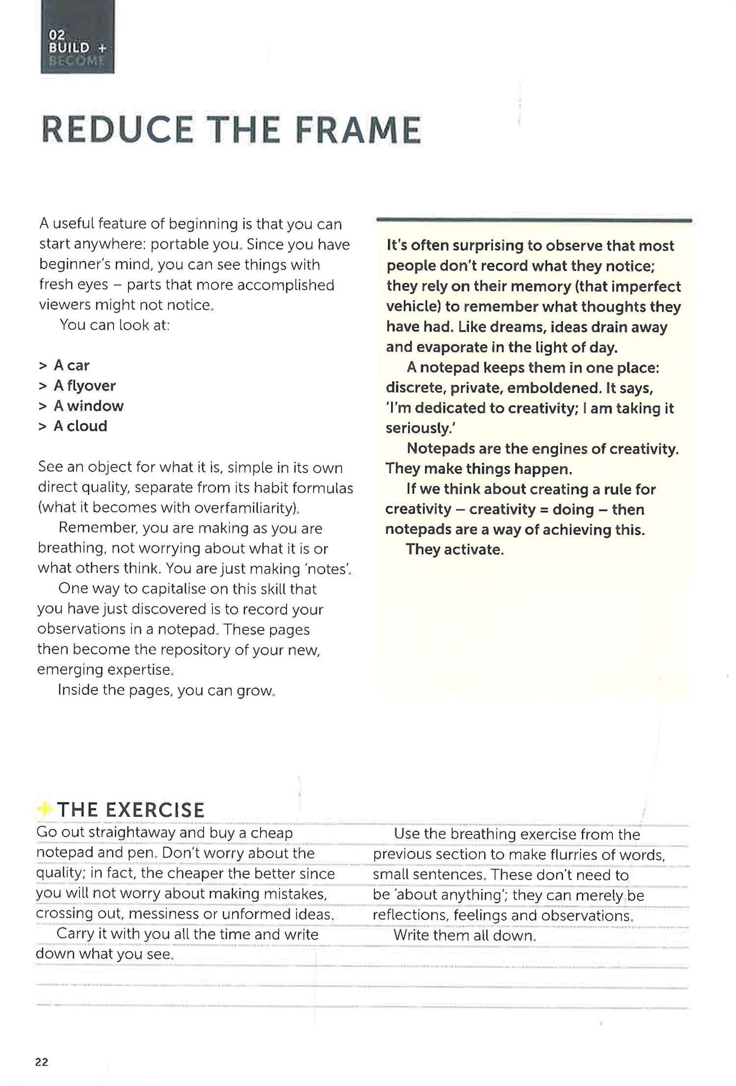 Creativity begins with you. Through a series of 20 practical and effective exercises, all using a unique visual approach, Michael Atavar challenges you to open your mind, shift your perspective and ignite your creativity. Whatever your passion, craft or aims, this book will expertly guide you from bright idea, through the tricky stages of development, to making your concepts a reality. We often treat creativity as if it was something separate from us - in fact it is, as this book demonstrates, incredibly simple: creativity is nothing other than the very core of 'you'. At Build and Become we believe in building knowledge that helps you navigate your world. Our books help you make sense of the changing world around you by taking you from concept to real-life application through 20 accessible lessons designed to make you think. Create your library of knowledge. For further information on Build+Become, follow us on Instagram, Twitter and Facebook.