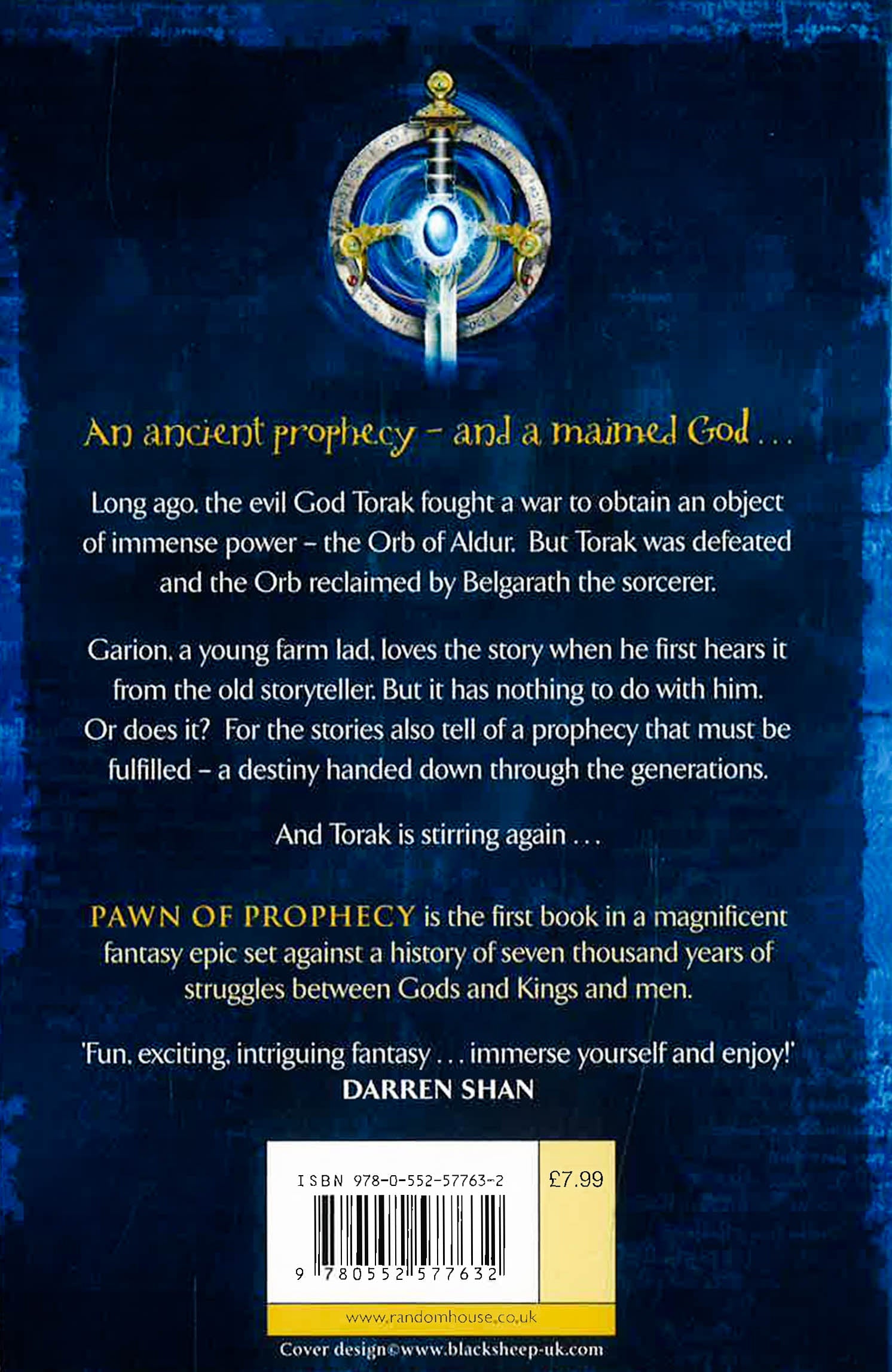 Long ago, the evil God Torak fought a war to obtain an object of immense power - the Orb of Aldur. But Torak was defeated and the Orb reclaimed by Belgarath the sorcerer. Garion, a young farm lad, loves the story when he first hears it from the old storyteller. But it has nothing to do with him. Or does it? For the stories also tell of a prophecy that must be fulfilled - a destiny handed down through the generations. And Torak is stirring again . . .
