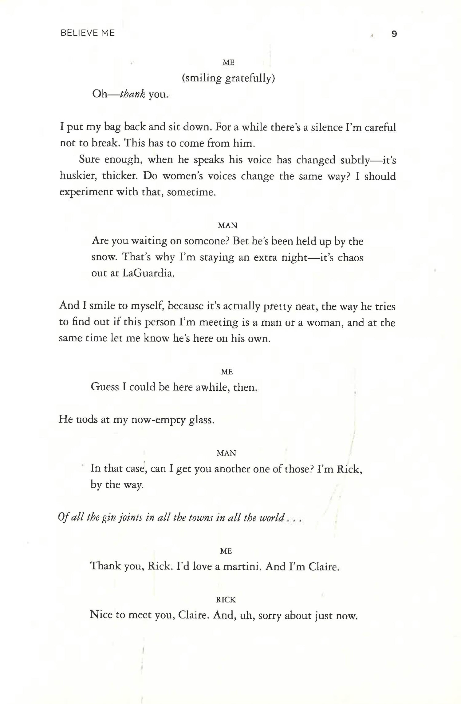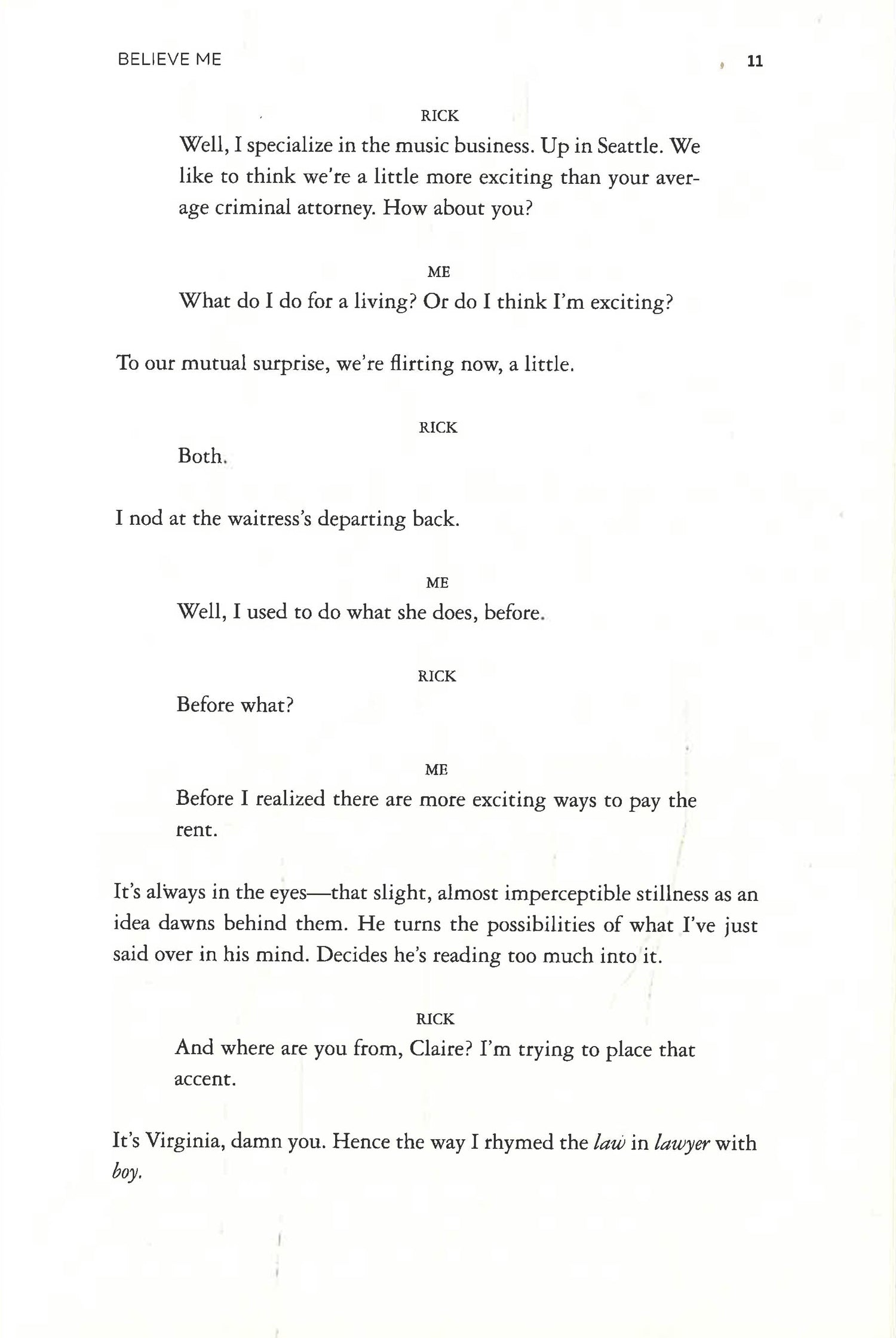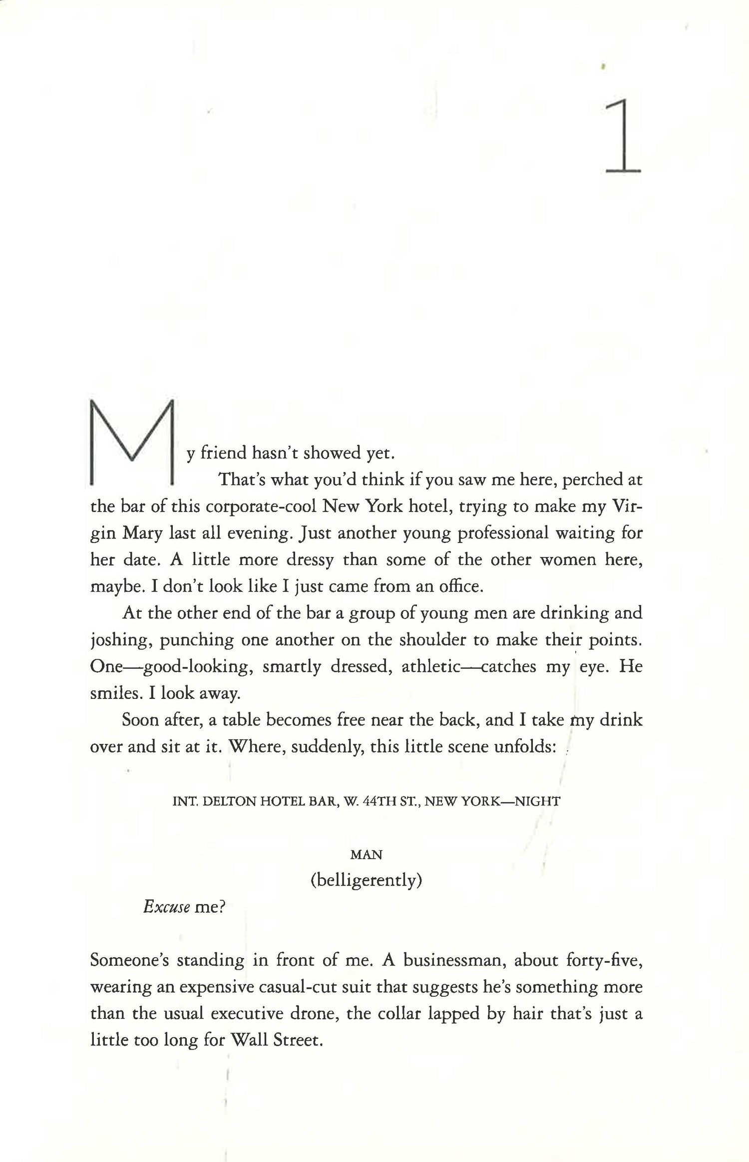 Claire Wright is desperate. A British drama student in New York without a green card, she takes the only job she can get: working for a firm of divorce lawyers, posing as an easy pickup in hotel bars to entrap straying husbands. But then the game changes.