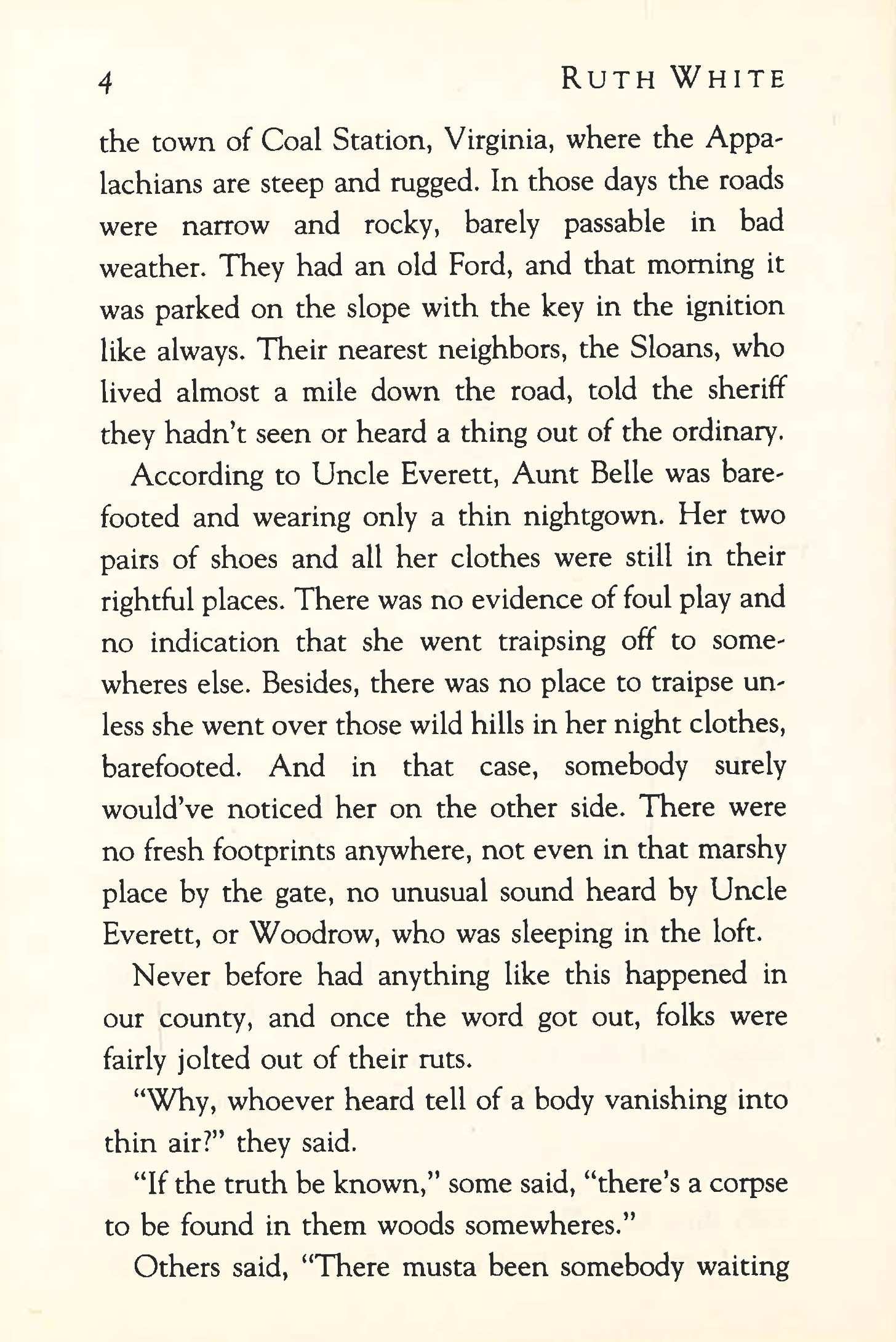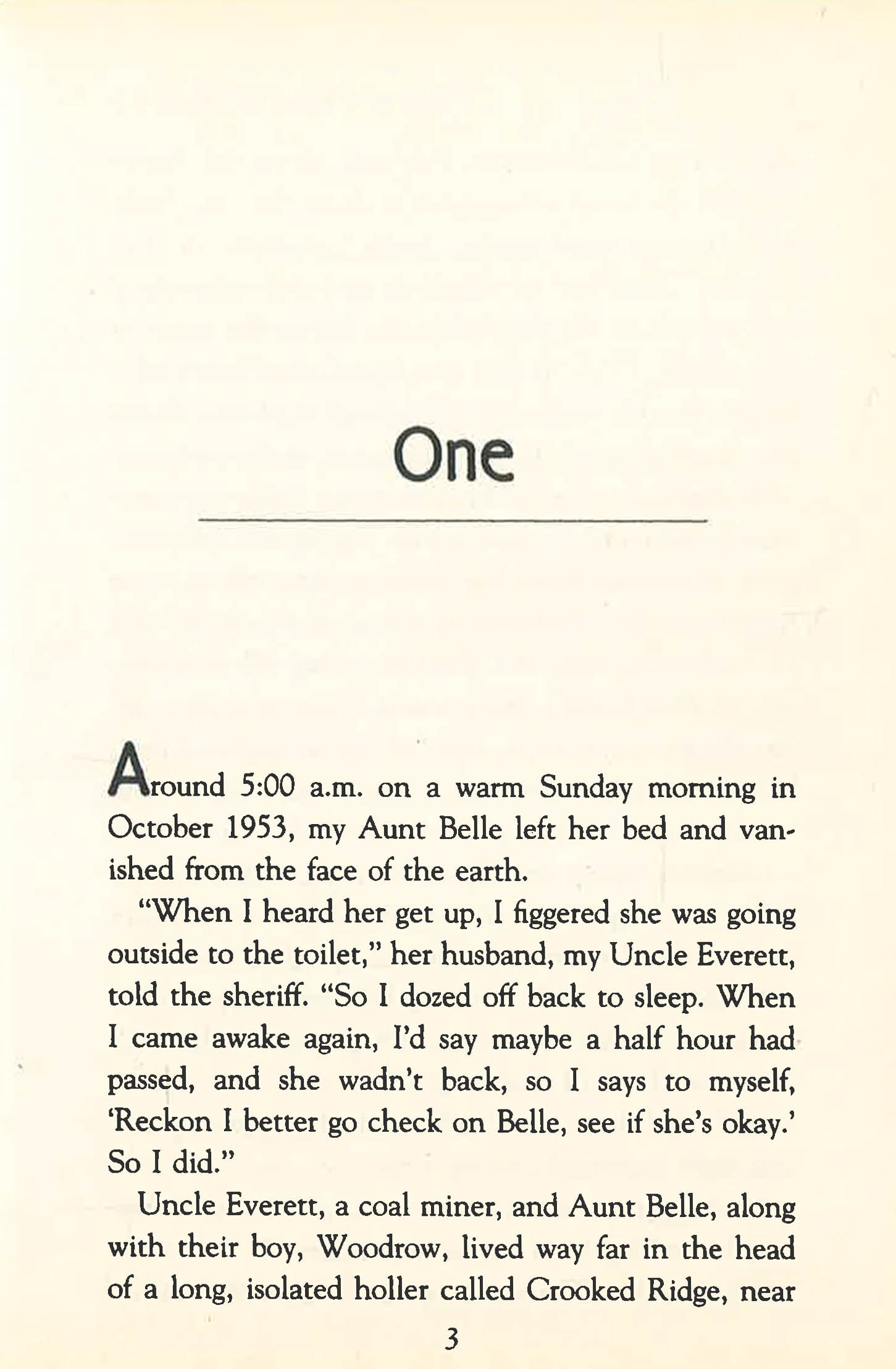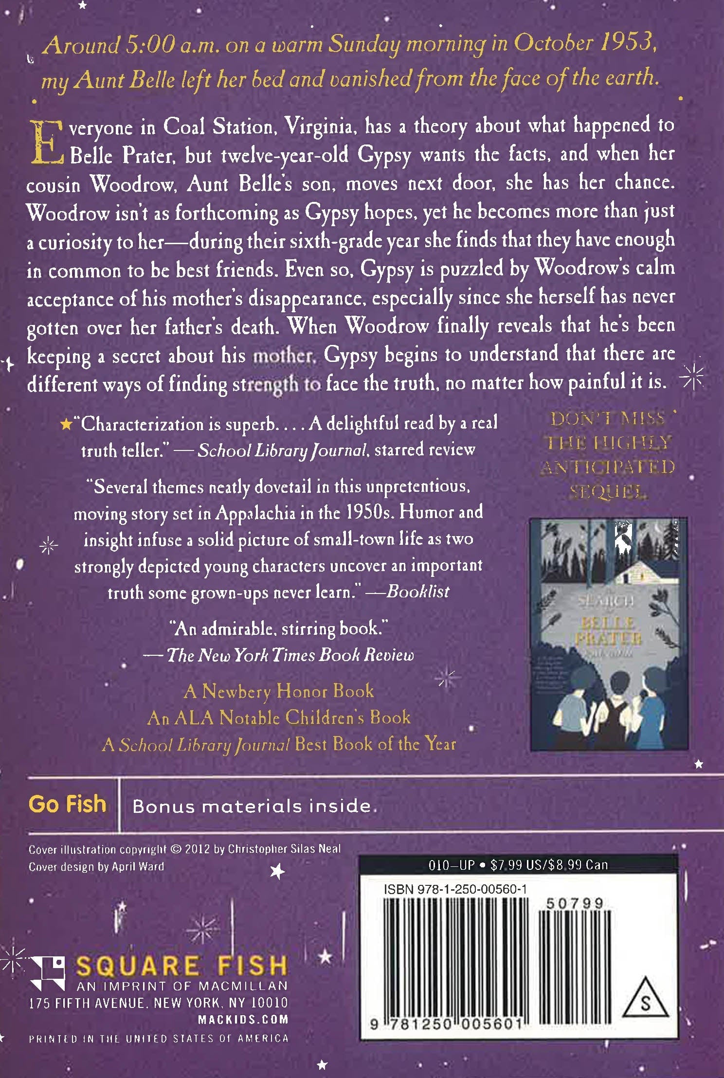 Around 5:00 a.m. on a warm Sunday morning on October 1953, my Aunt Belle left her bed and vanished from the face of the earth. Everyone in Coal Station, Virginia, has a theory about what happened to Belle Prater, but twelve-year-old Gypsy wants the facts, and when her cousin Woodrow, Aunt Belle's son moves next door, she has her chance. Woodrow isn't as forthcoming as Gypsy hopes, yet he becomes more than just a curiosity to her-- during their sixth-grade year she finds that they have enough in common to be best friends. Even so, Gypsy is puzzled by Woodrow's calm acceptance of his mother's disappearance, especially since she herself has never gotten over her father's death. When Woodrow finally reveals that he's been keeping a secret about his mother, Gypsy begins to understand that there are different ways of finding the strength to face the truth, no matter how painful it is. Belle Prater's Boy is a 1996 Boston Globe - Horn Book Awards Honor Book for Fiction and a 1997 Newbery Honor Book.