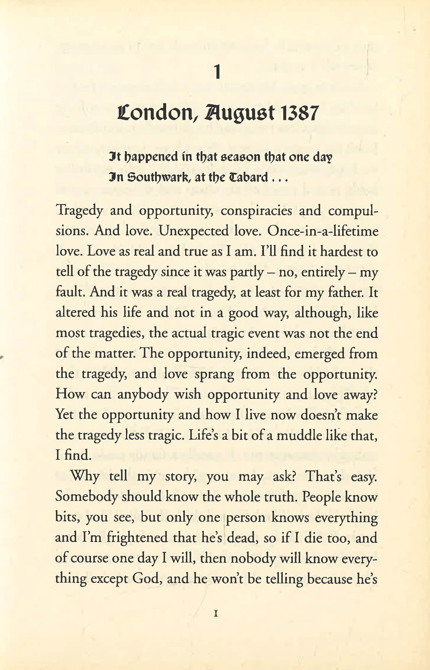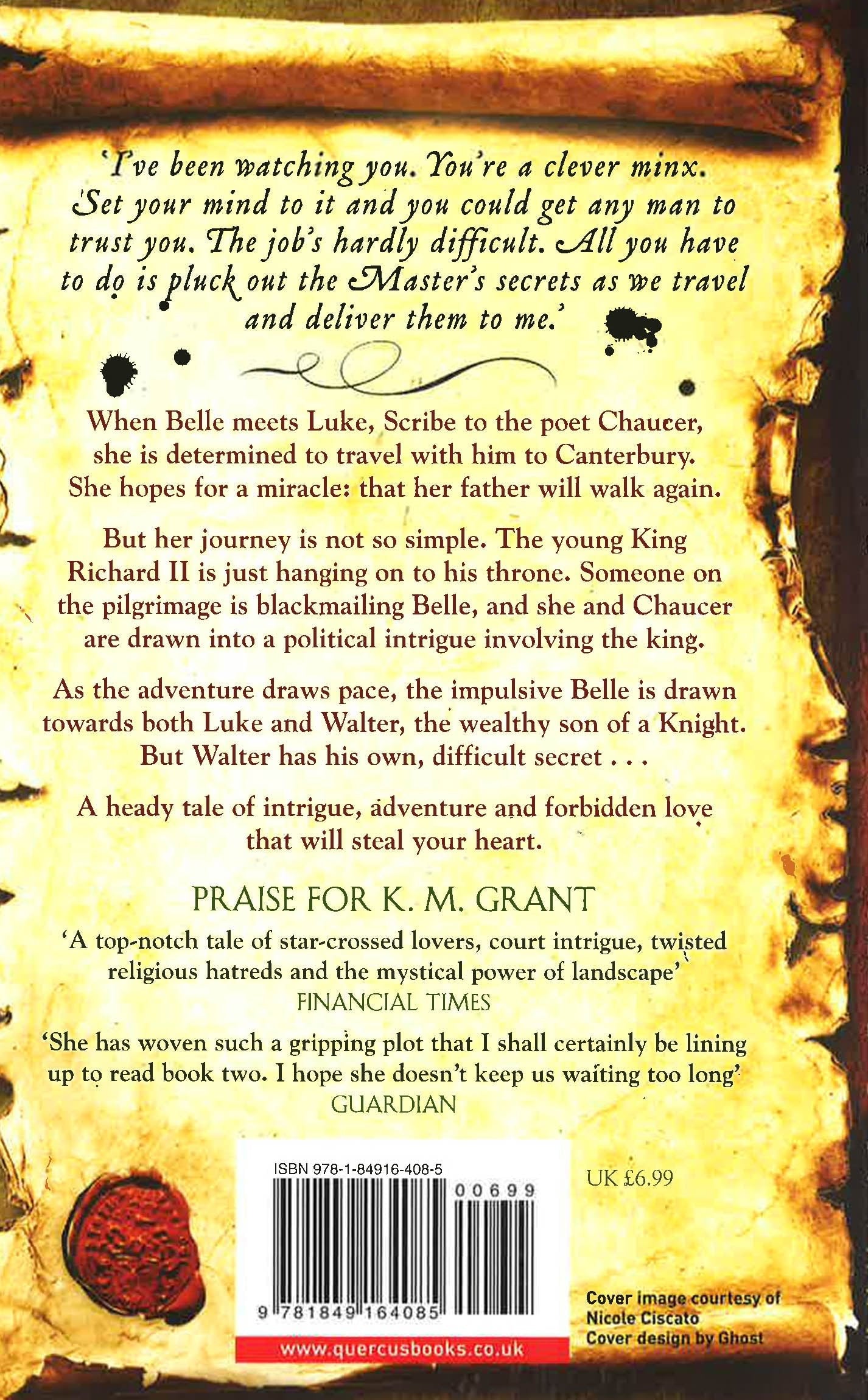 When Belle meets Luke, son of an alchemist and Scribe to the famous poet Chaucer, she is determined to travel with him to Canterbury on a pilgrimage. She hopes for a miracle: that her father will walk again. She also hopes to atone for her own part in his accident. It is a time of unrest across the country and the young King Richard II is just hanging on to his throne. A malign character on the pilgrimage suspects Chaucer of treason and slowly winds Belle into a political intrigue. At the same time, the impulsive Belle is drawn towards both Luke and to Walter, the wealthy son of a Knight. But Walter himself is in love with Luke... As the uprising against the King starts to draw pace and the web of intrigue around Belle and Chaucer tightens, Belle and her friends must risk everything to save their country and themselves...