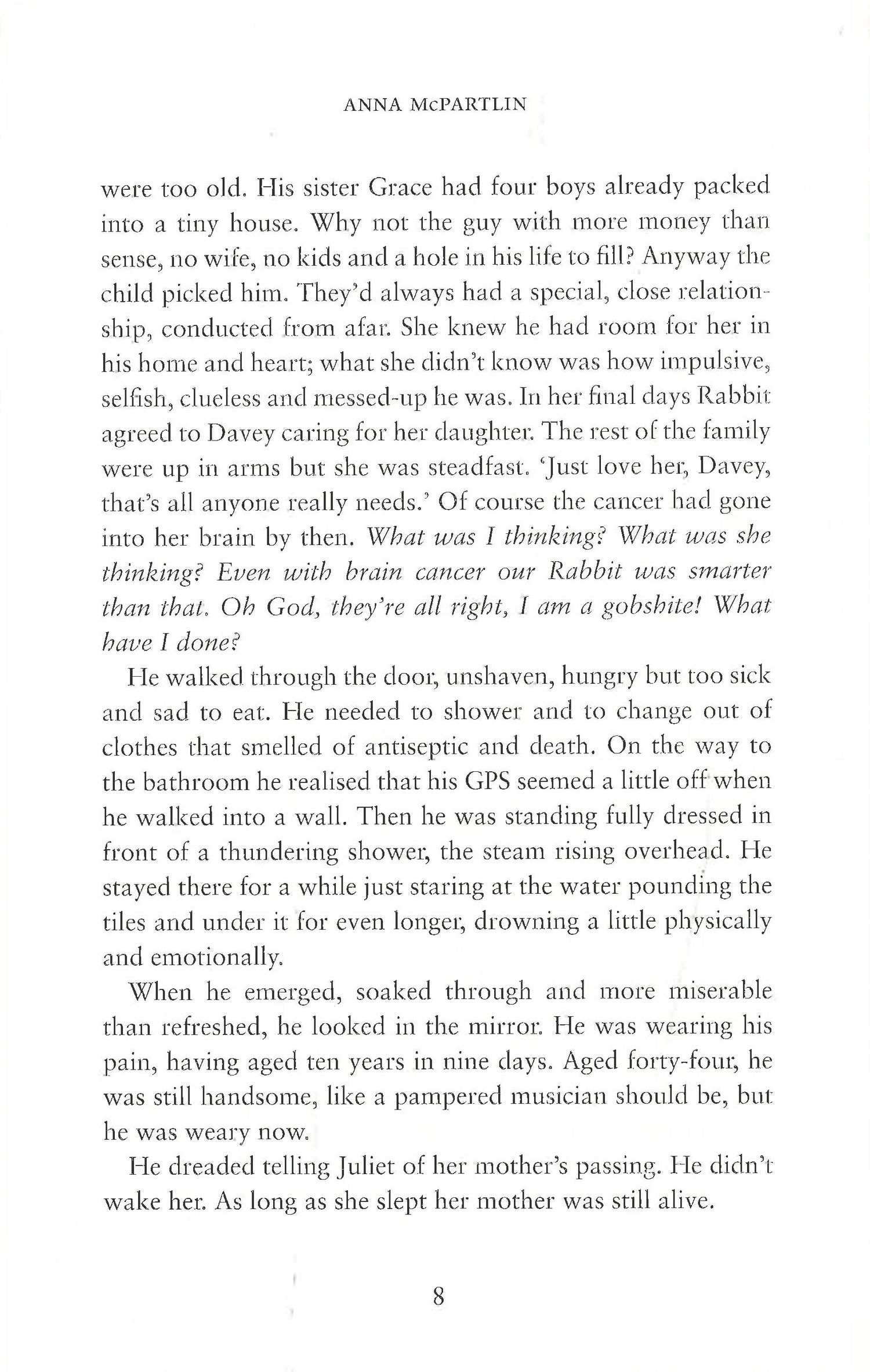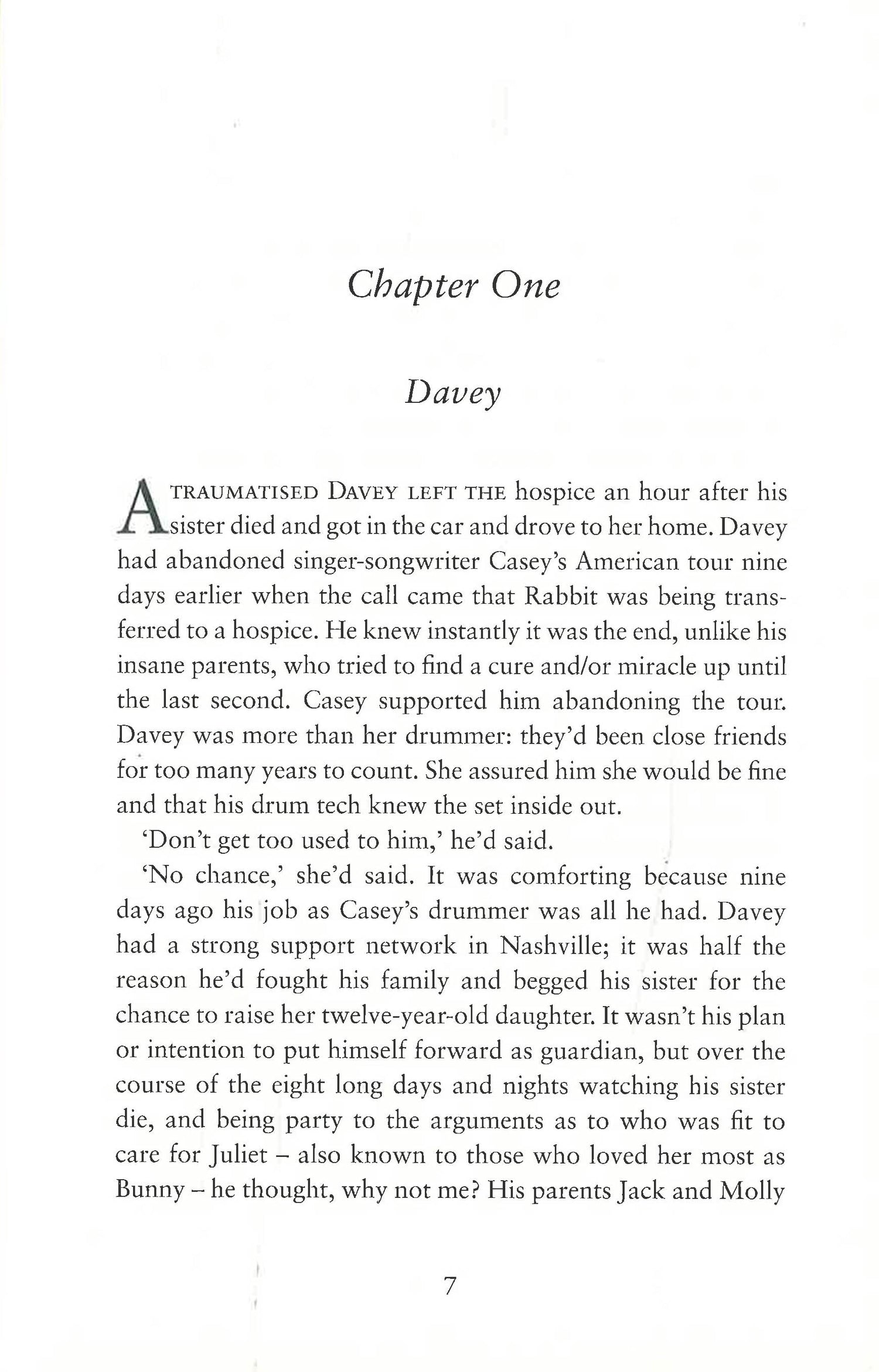 Rabbit's brother Davey finds himself suddenly guardian to her twelve-year-old daughter Juliet. Juliet might be able to fill a hole in Davey's heart - but how can he help Juliet through her grief when he can barely cope with his own?