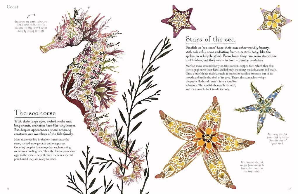 Artist Helen Ahpornsiri transforms silky seaweeds, feathery algae and bright coastal blooms into playful penguins, scuttling crabs and schools of silvery sharks. Turn the page to explore each corner of the oceans, from hidden rock pools to the darkest depths. Marvel as plants transform into marvellous creatures, and discover the magic and beauty that lies beneath the waves . . .