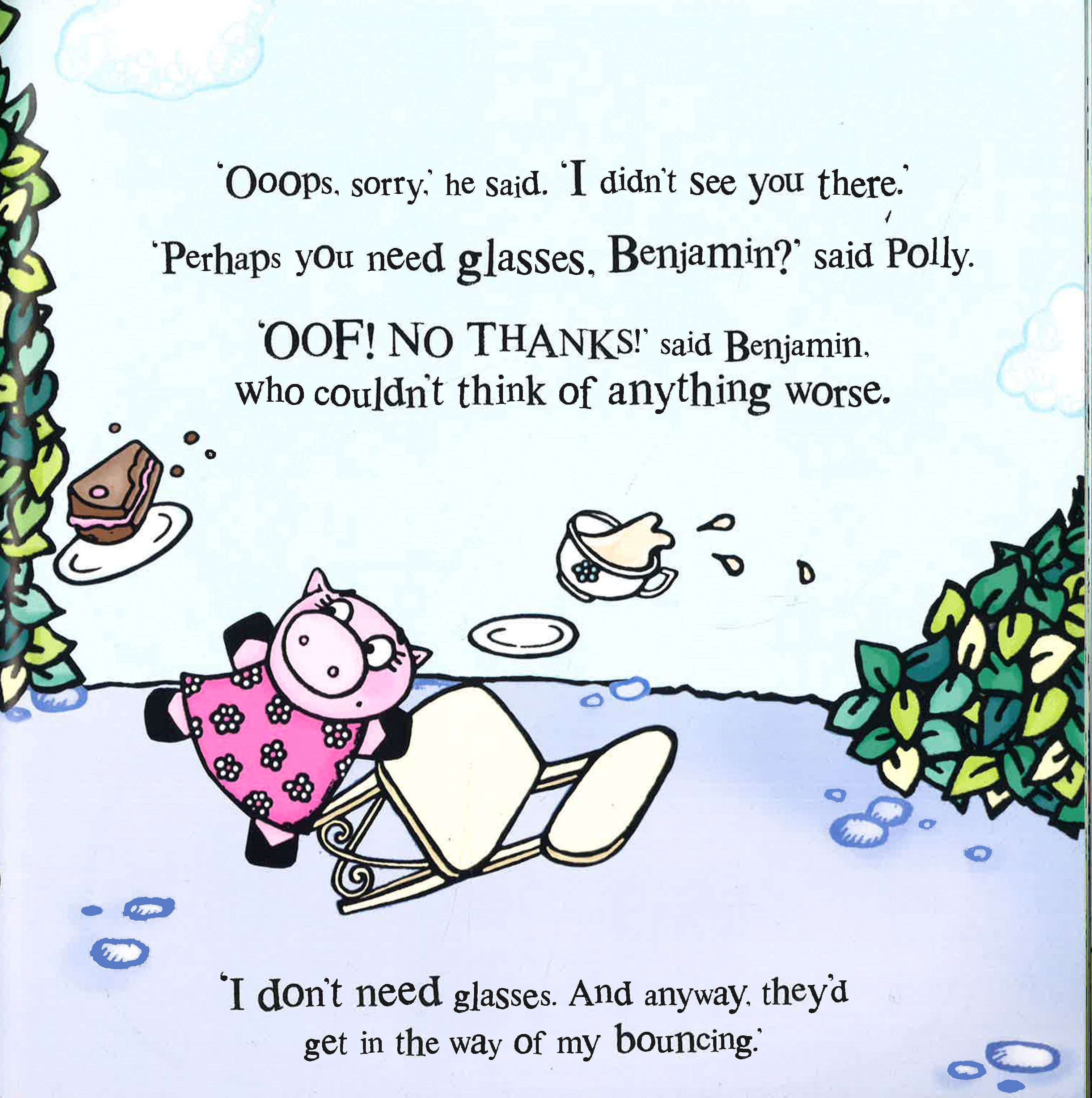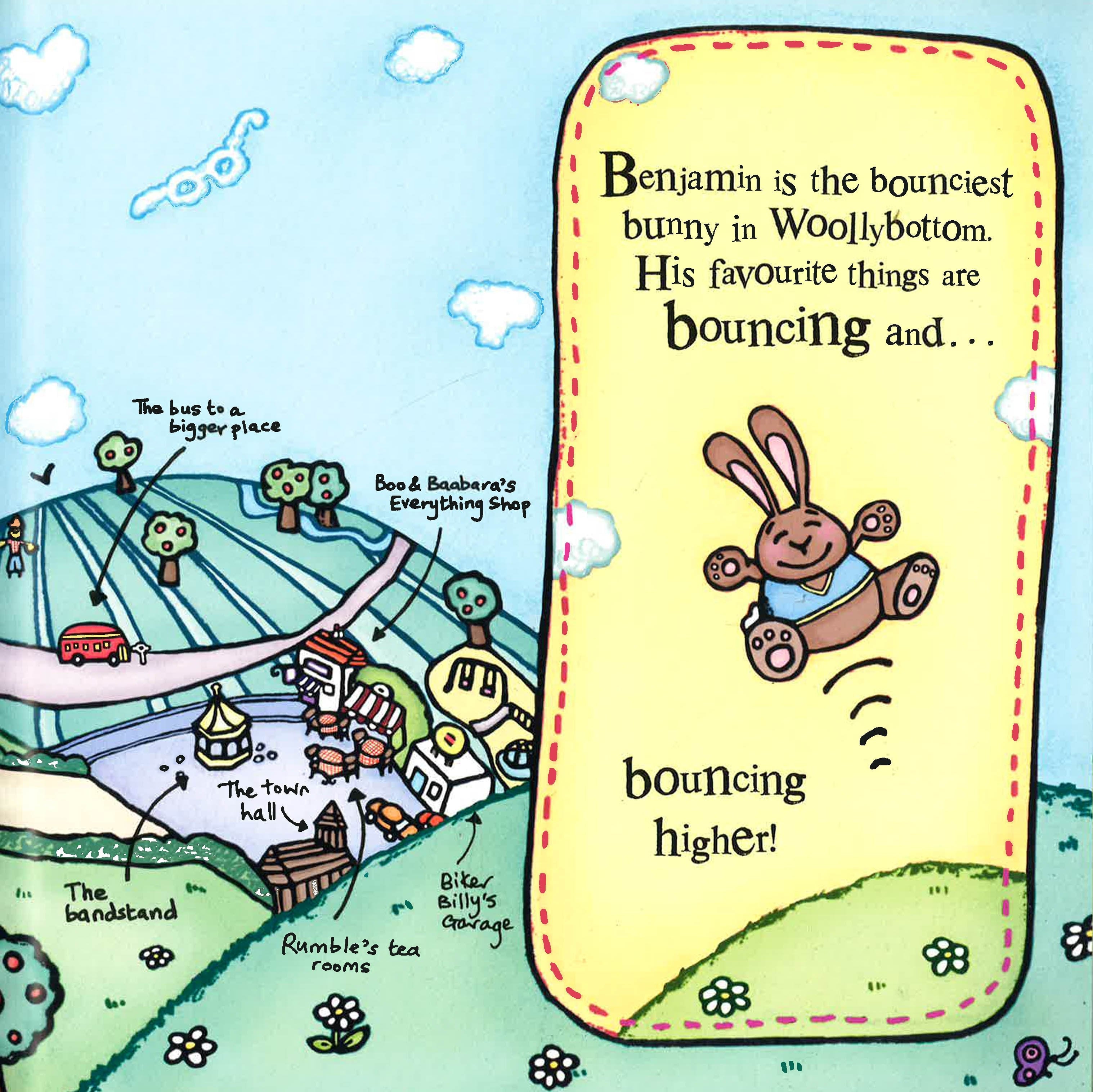 The second fantastic tale from the Wonderful World of Walter and Winnie - an enchanting new picture book series from Rachel Bright. At the top of a very tall hill in a very small place called Woollybottom, is a horseshoe of houses. Walter lives in one house and Winnie lives next door, which is lucky, because Walter & Winnie are the best of friends. And Benjamin Bounce lives very close by.Benjamin's favourite things are:1.Bouncing2.Bouncing higher…Benjamin is full of beans. He just never stops bouncing. But this story is about the time when his bounce got him a some very big bumps on the head…Unique picture book talent, Rachel Bright, has created the wacky world of Woollybottom, a little town that sits on top of a very tall hill, and home to best friends, Walter and Winnie, and a whole host of other charming characters. Each book in the series gently and humorously addresses a ‘first experience' that all young children will be able to relate to, in Rachel's inimitable style.