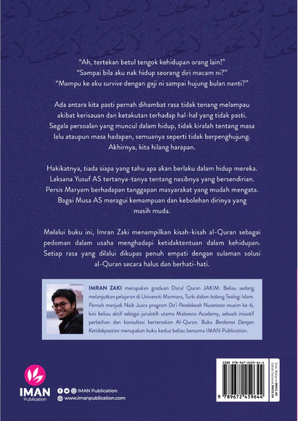 Melalui buku ini, Imran Zaki menampilkan kisah-kisah al-Quran sebagai pedoman dalam usaha menghadapi ketidaktentuan dalam kehidupan. Setiap rasa yang dilalui dikupas penuh empati dengan sulaman solusi al-Quran secara halus dan berhati-hati.