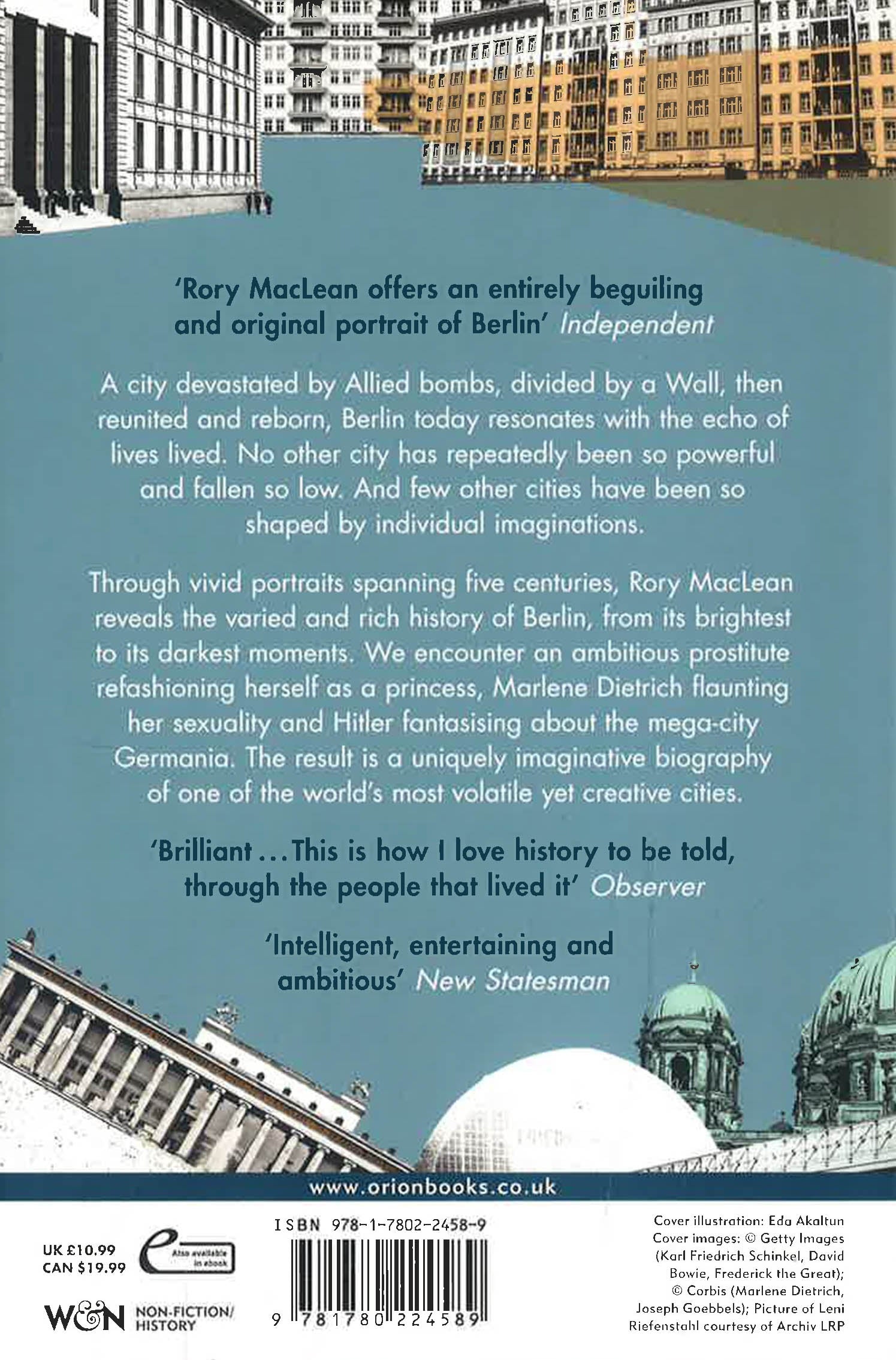 The first single-volume biography of Berlin, one of the world's great cities - told via twenty-one portraits, from medieval times to the twenty-first century.A city devastated by Allied bombs, divided by a Wall, then reunited and reborn, Berlin today resonates with the echo of lives lived, dreams realised and evils executed. No other city has repeatedly been so powerful and fallen so low. And few other cities have been so shaped and defined by individual imaginations.Through vivid portraits spanning five centuries, Rory MacLean reveals the varied and rich history of Berlin, from its brightest to its darkest moments. We encounter an ambitious prostitute refashioning herself as a princess, a Scottish mercenary fighting for the Prussian Army, Marlene Dietrich flaunting her sexuality and Hitler fantasising about the mega-city Germania. The result is a uniquely imaginative biography of one of the world's most volatile yet creative cities.