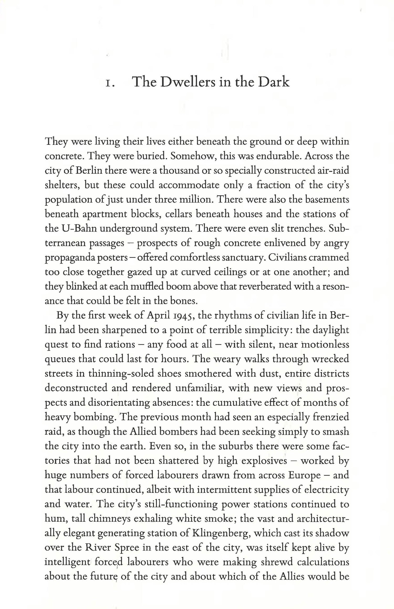 Sinclair McKay's Berlin begins by taking readers back to 1919 when the city emerged from the shadows of the Great War to become an extraordinary by-word for modernity--in art, cinema, architecture, industry, science, and politics. He traces the city's history through the rise of Hitler and the Battle for Berlin which ended in the final conquest of the city in 1945. It was a key moment in modern world history, but beyond the global repercussions lay thousands of individual stories of agony. From the countless women who endured nightmare ordeals at the hands of the Soviet soldiers to the teenage boys fitted with steel helmets too big for their heads and guns too big for their hands, McKay thrusts readers into the human cataclysm that tore down the modernity of the streets and reduced what was once the most sophisticated city on earth to ruins.