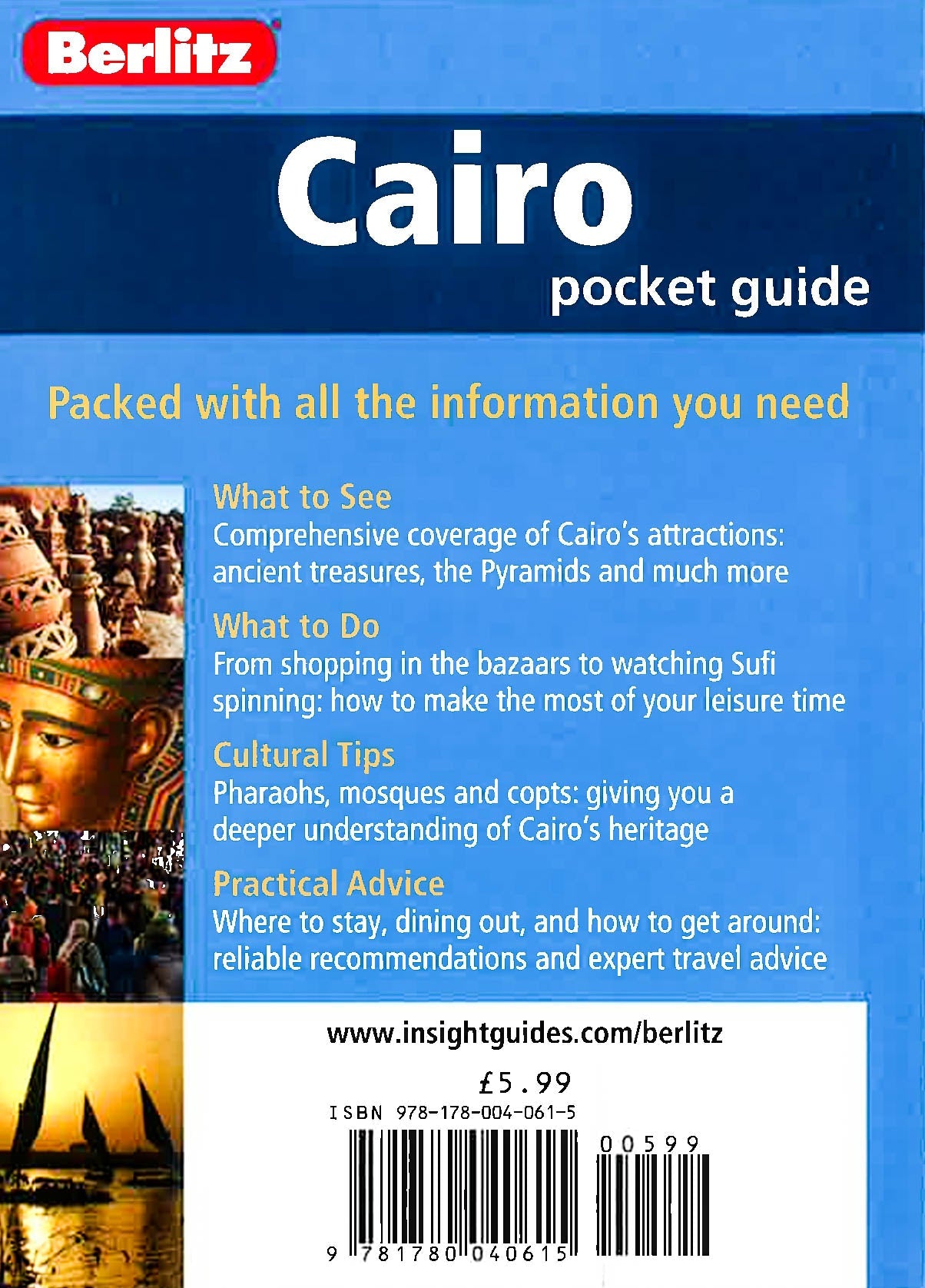 Berlitz Pocket Guide Cairo combines informative text with vivid colour photography to uncover one of the world's largest cities. It covers everything you need to know about Cairo's attractions, from the Egyptian Museum's world-class collections and the Muhammed Ali Mosque in the Citadel to the Khan Al-Khalili bazaar and, of course, the Giza Pyramids on the city's doorstep. Handy maps on the cover flaps help you navigate, and the book uses colour-coding to differentiate between sections. To inspire you, the book offers a rundown of the Top 10 Attractions in the city, followed by an itinerary for a Perfect Day in Cairo. The What To Do chapter is a snapshot of ways to spend your time, from shopping at the bustling Khan Al-Khalili bazaar to sailing serenely down the Nile. The book provides all the essential background information, including a brief history of Cairo and an Eating Out chapter covering Egyptian cuisine. There are carefully chosen listings of the best hotels and restaurants, and an A-Z of all the practical information you'll need