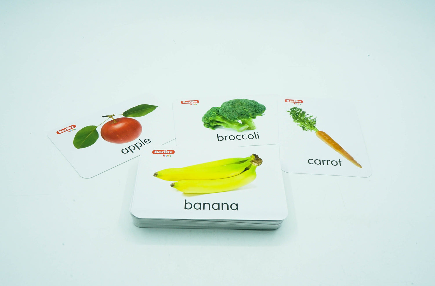 The Berlitz Flash cards are designed to teach children aged 3 to 6 years the words they need to know, such as numbers, colours, animals, and more. There are 50 cards in a pack, each one with a brightly coloured photo, which make these flash cards visually appealing and fun to play with; the sturdy card and pocket size mean they are durable and easy for little fingers to handle. These cards have been developed by a team of language experts and educators, and are designed to encourage children to talk about different objects they encounter in everyday life. The reverse side includes suggested topics for you to engage your child in interesting conversations about the world around them and to develop their knowledge and vocabulary.