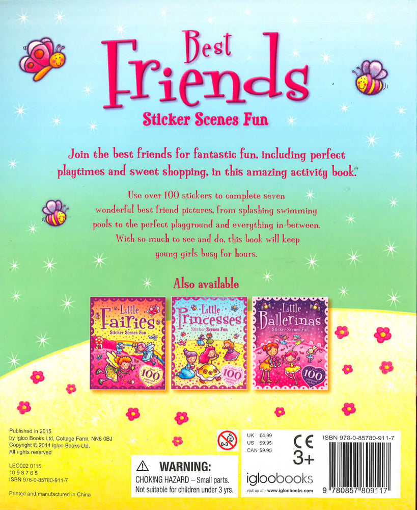 Join the best friends for fantastic fun, including perfect playtimes and sweet shopping, in this amazing activity book. Use over 1000 stickers to complete seven wonderful fairy pictures, from magical wishing well to rainbow-filled meadows and everything-in-betweens. With so much to see and do, this book will keep young girls entertained for hours.