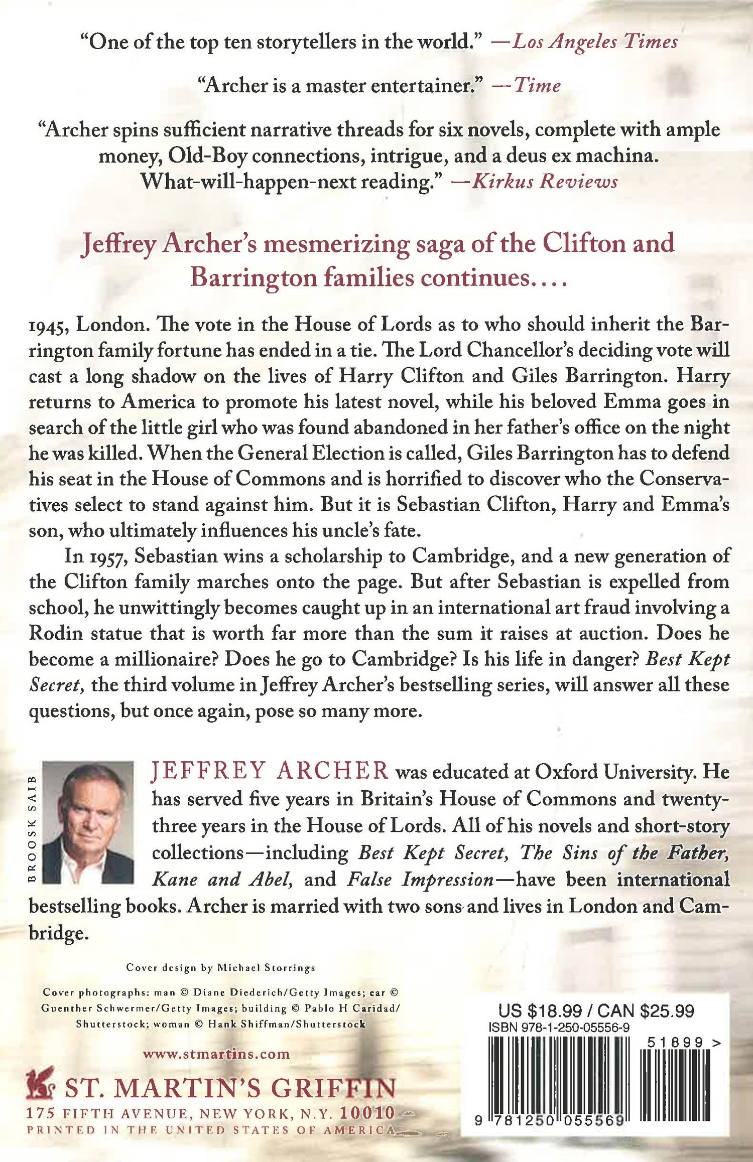 In 1957, Sebastian wins a scholarship to Cambridge, and a new generation of the Clifton family marches onto the page. But after Sebastian is expelled from school, he unwittingly becomes caught up in an international art fraud involving a Rodin statue that is worth far more than the sum it raises at auction. Does he become a millionaire? Does he go to Cambridge? Is his life in danger? Best Kept Secret, the third volume in Jeffrey Archer's bestselling series, will answer all these questions but, once again, pose so many more.