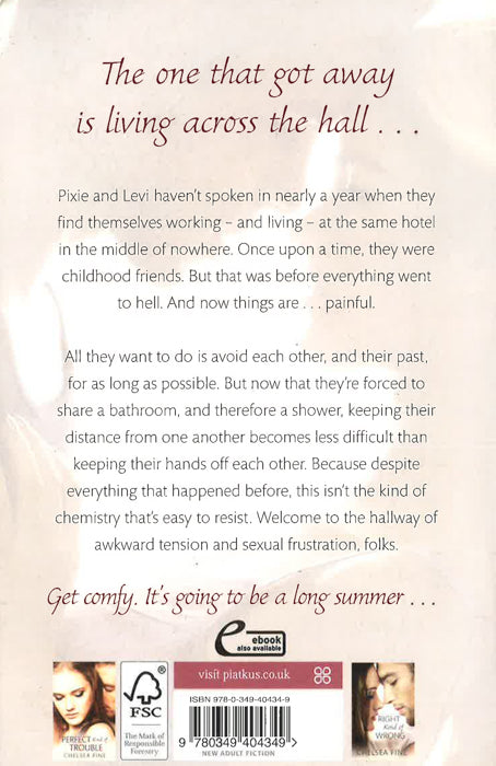 Sometimes moving on means moving in . . . Pixie Marshall's freshman year of college ended two weeks ago, as did her residence in the school dorms. Which means she's in need of a new place to live and, subsequently, a job. She started working at Willow Inn because one of the job perks-and she'd use that term loosely-is free room and board. But what she hadn't realized is that her free room shares a hallway and a bathroom with the only person she was hoping to avoid for the rest of her life: Levi Andrews. As in: Hot guy. Handyman. Keeper of all her painful memories. Once upon a time, they were best friends on the brink of being something more, but that was before everything went to hell. All Pixie wants to do now is avoid him completely, which might be more harder than she thought. Because despite everything that happened before, Levi hasn't let go of his feelings for her either.