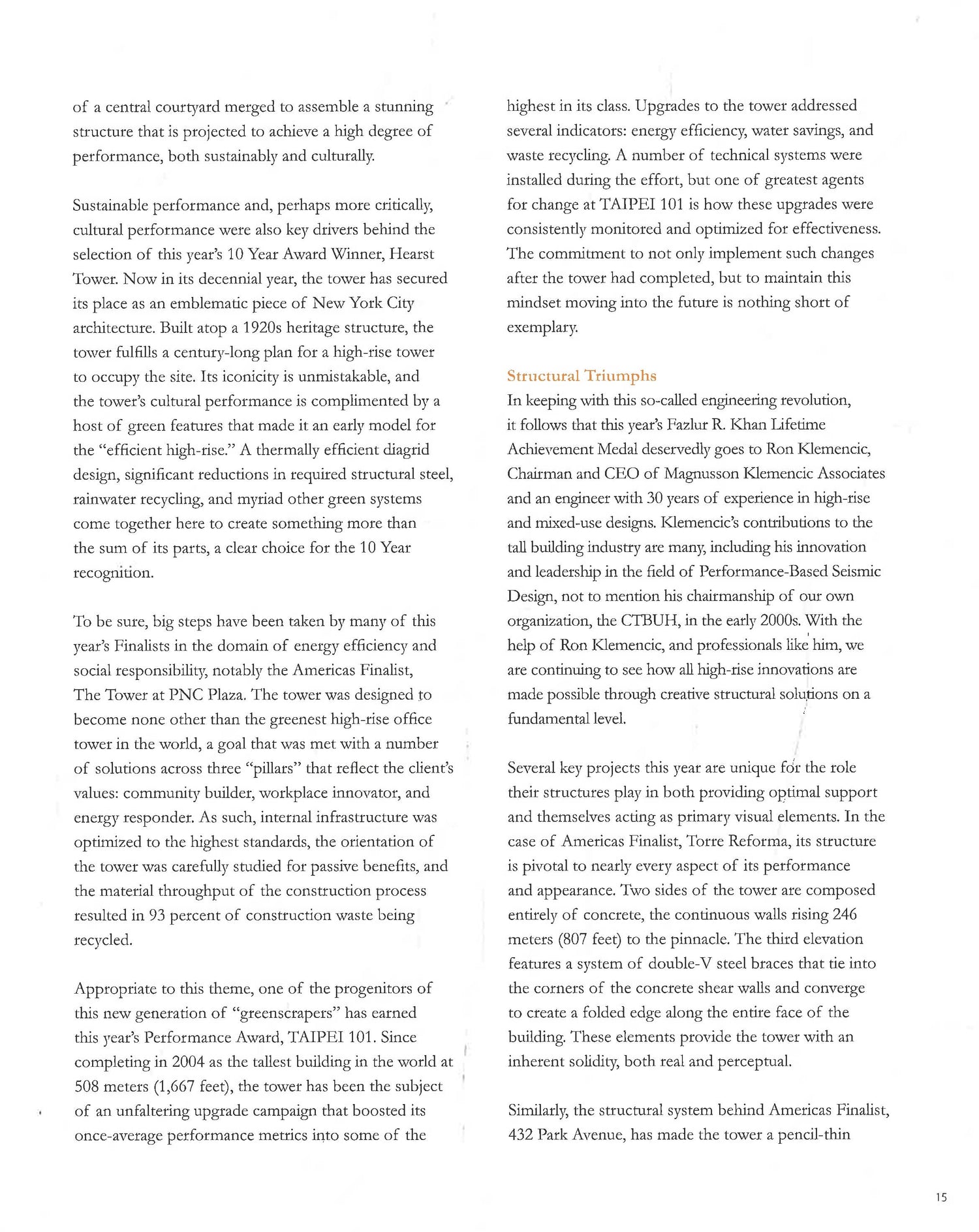 The Council on Tall Buildings and Urban Habitat (CTBUH) is the world's foremost authority on tall buildings. Best Tall Buildings chronicles the annual awards process, in which the CTBUH recognises outstanding tall buildings and design innovations that advance the potential of integrated sustainability, economic productivity, and social prosperity in cities across the world. More than an awards book, this volume serves as a global overview of tall building construction and activity in a given year, providing an in-depth description of the buildings' design and significance, accompanied by stunning images, detailed drawings, and plans. This book provides fascinating and inspiring reading for all those interested in the planning, design, and construction of tall buildings. CTBUH bestows 11 awards annually, four of which are given to buildings in various geographical regions: Americas, Asia & Australasia, Europe, and Middle East & Africa. The title of overall Best Tall Building Worldwide is then presented to one of the four regional winners at the annual CTBUH Awards Symposium and Ceremony. Additionally, the Urban Habitat Award recognises significant contributions to the urban realm, in connection with tall buildings. The 10 Year Award recognises proven value and performance - across one or more of a wide range of criteria - after a building has been complete and in operation for a decade. The Innovation Award recognises a specific area of recent innovation in the tall building industry that has been incorporated into the design of, or significantly tested in, the construction, operation, or refurbishment of a tall building project. The Performance Award recognises a building with proven value and performance over a minimum of three years. The CTBUH also gives two annual Lifetime Achievement Awards to individuals who have made significant contributions to the design or technical advancement of tall buildings.