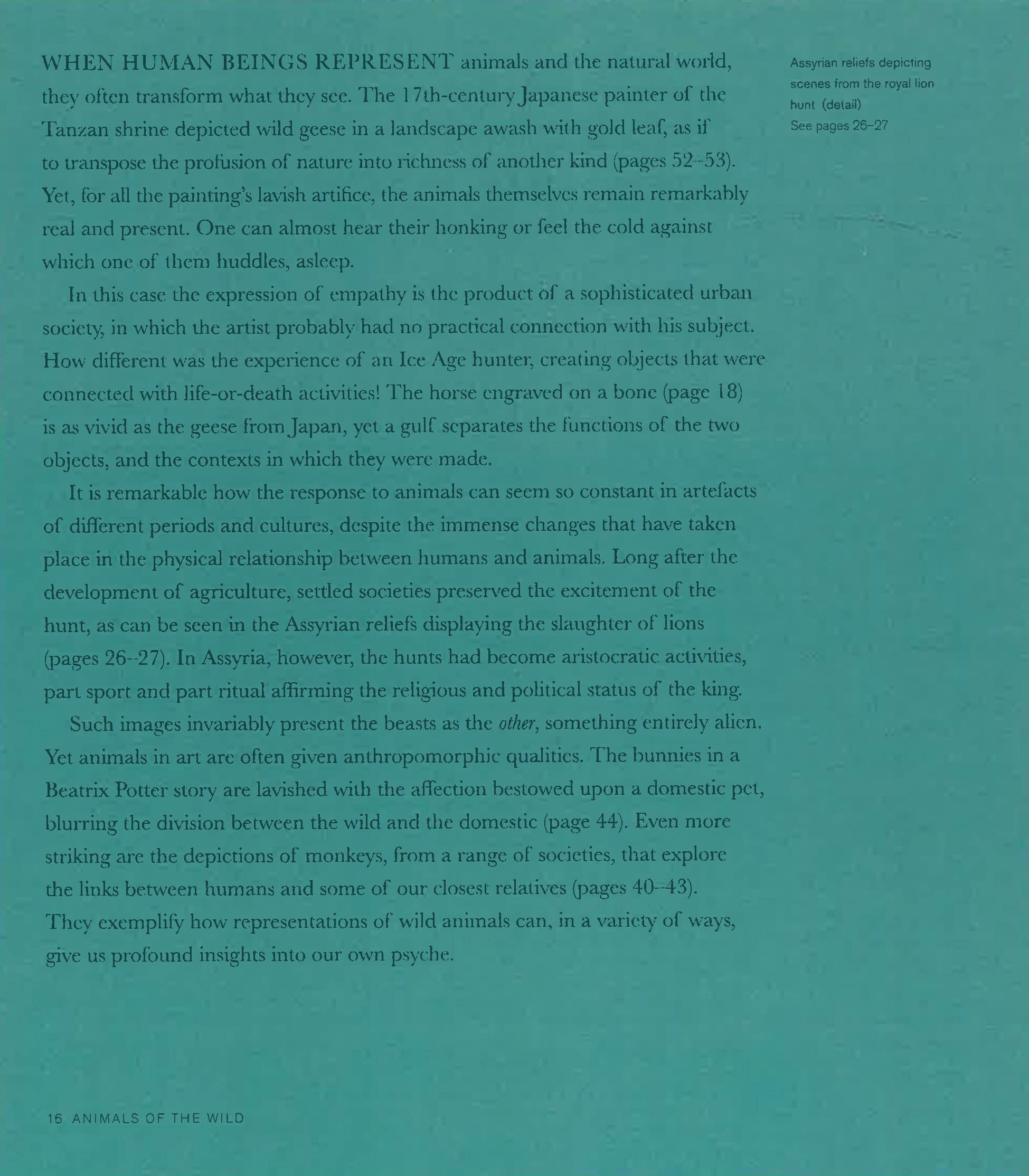 Arranged thematically into five chapters (wild, domestic, exotic, symbolic, and hybrids and mythical creatures), this book depicts animals in intelligent pairings and groupings of images that encourage the reader to find and learn the cultural context and connections between the origins of many different civilizations. An ancient Egyptian bronze divine cat sits next to a nineteenth-century print of English domestic feline bliss; a miniature Ice Age mammoth sits with an ancient engraved drawing of a horse; a Minoan acrobat leaps onto the back of a 3,500-year-old bull.