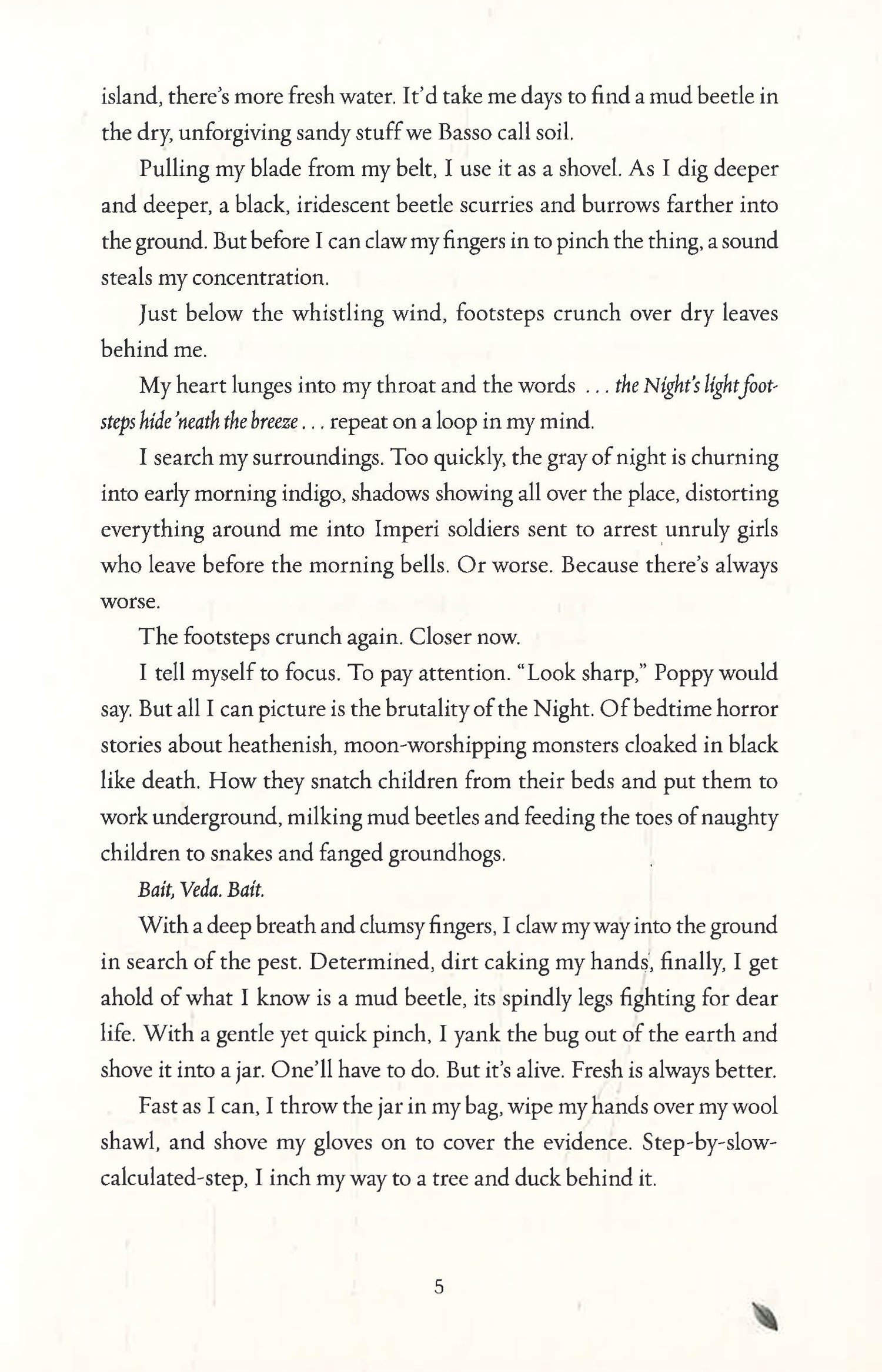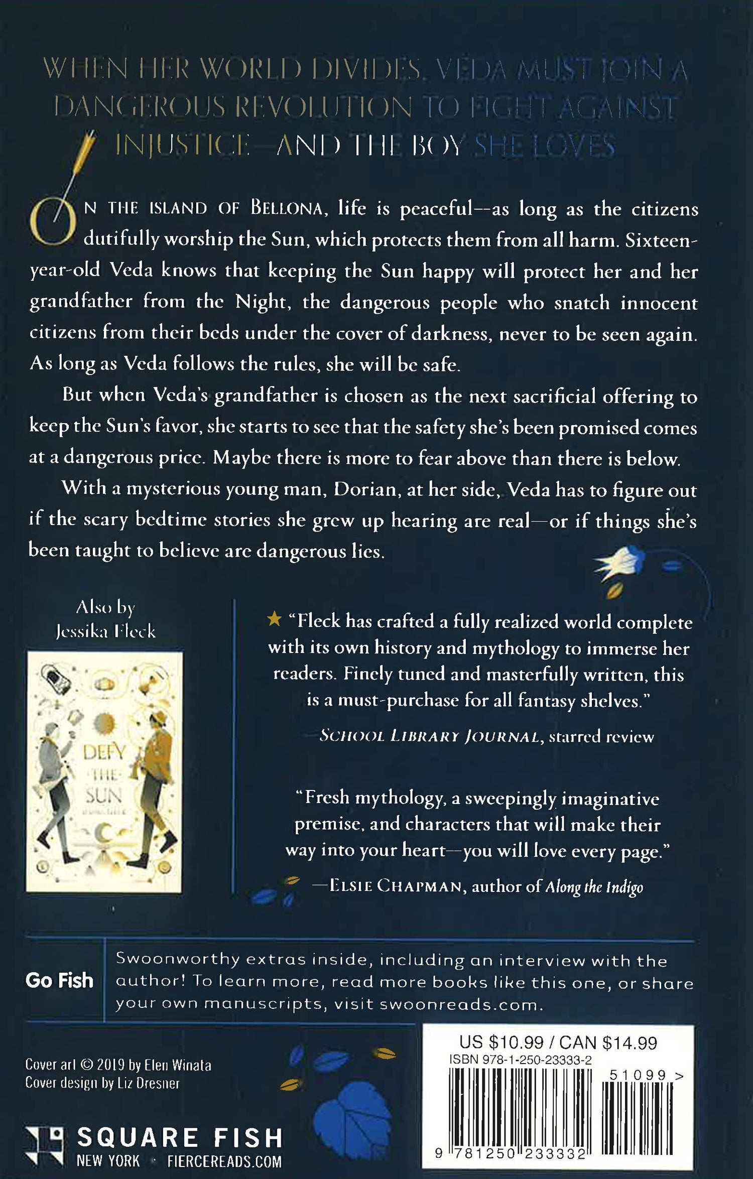 But when Veda's grandfather is chosen as the next sacrificial offering to keep the sun's favor, Veda is forced to see the injustice of her world. Turning away from the sun means she must join the night--and an underground revolution she's been taught to fear all her life.