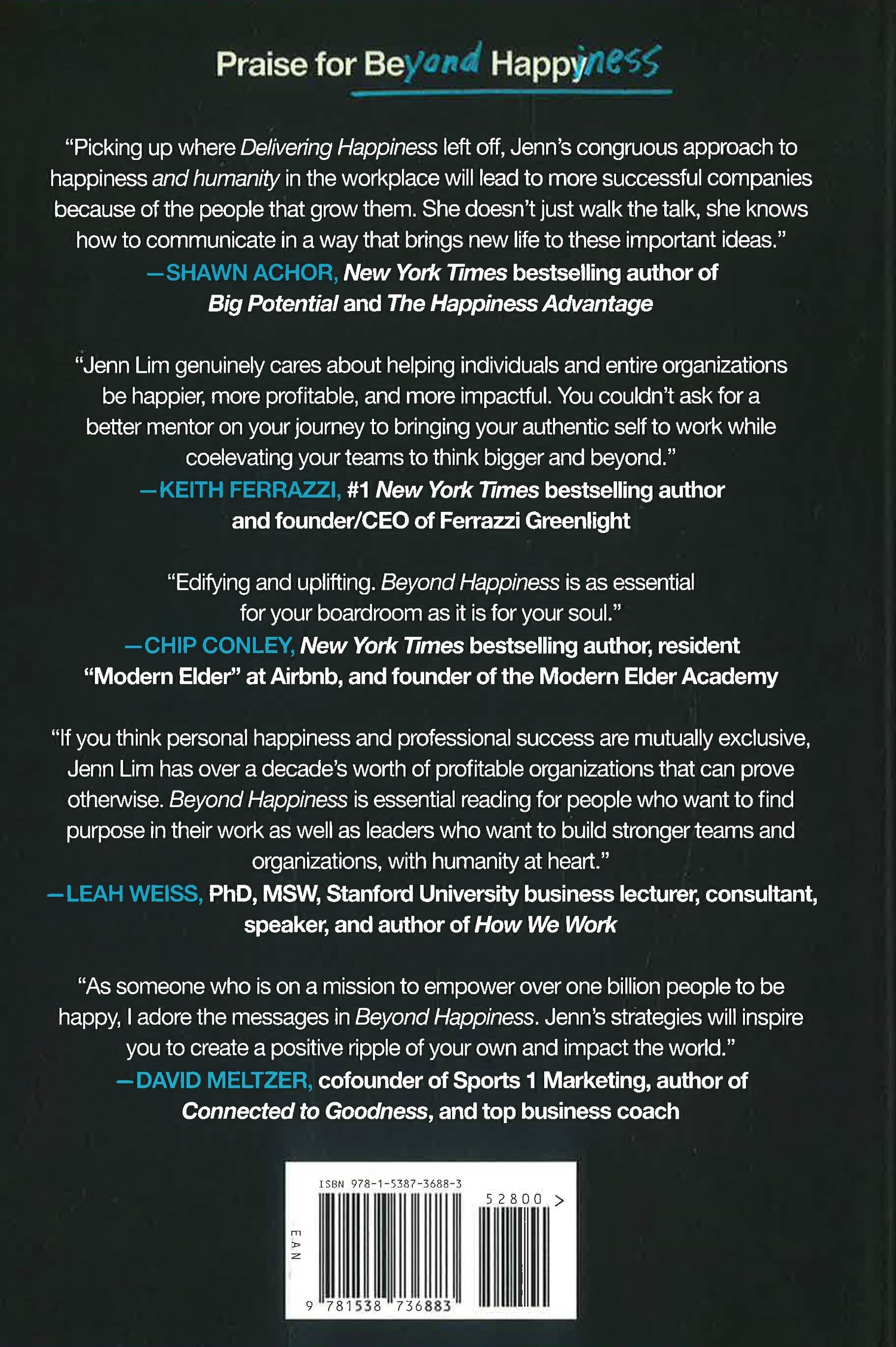 Jenn Lim has dedicated her career to helping companies build happier workplace cultures in ways that will benefit both their employees and their bottom line, with less employee turnover, greater engagement, and higher profits. Jenn has countless examples from her decades of work at company culture consultancy Delivering Happiness, including name-brand industry leaders and innovative governments, to demonstrate the profound impact happiness can have on businesses' ability to thrive in our ever-changing times. Now, in this book, she clearly and concretely explains what steps we as individuals can take to increase happiness, both at work and at home.