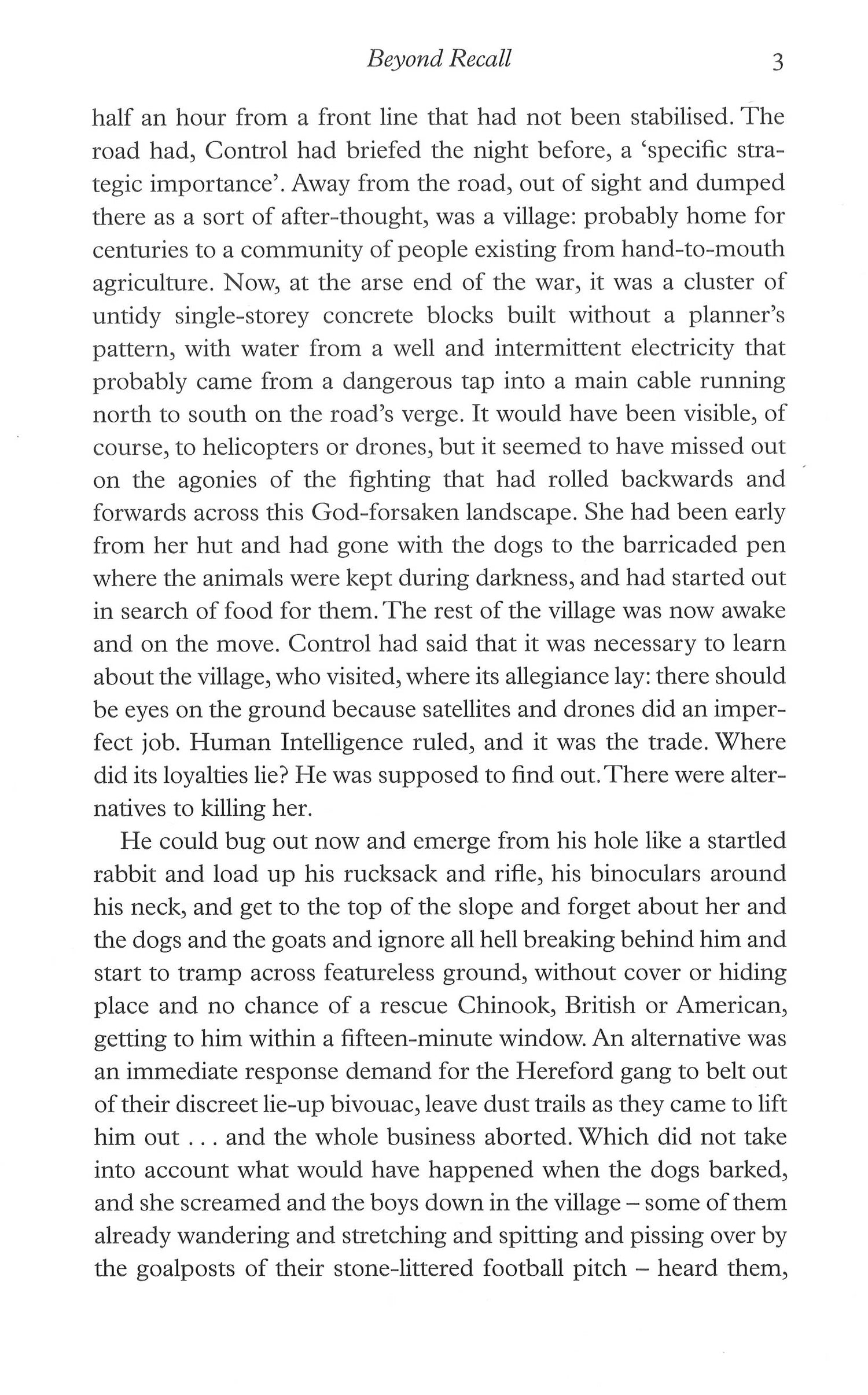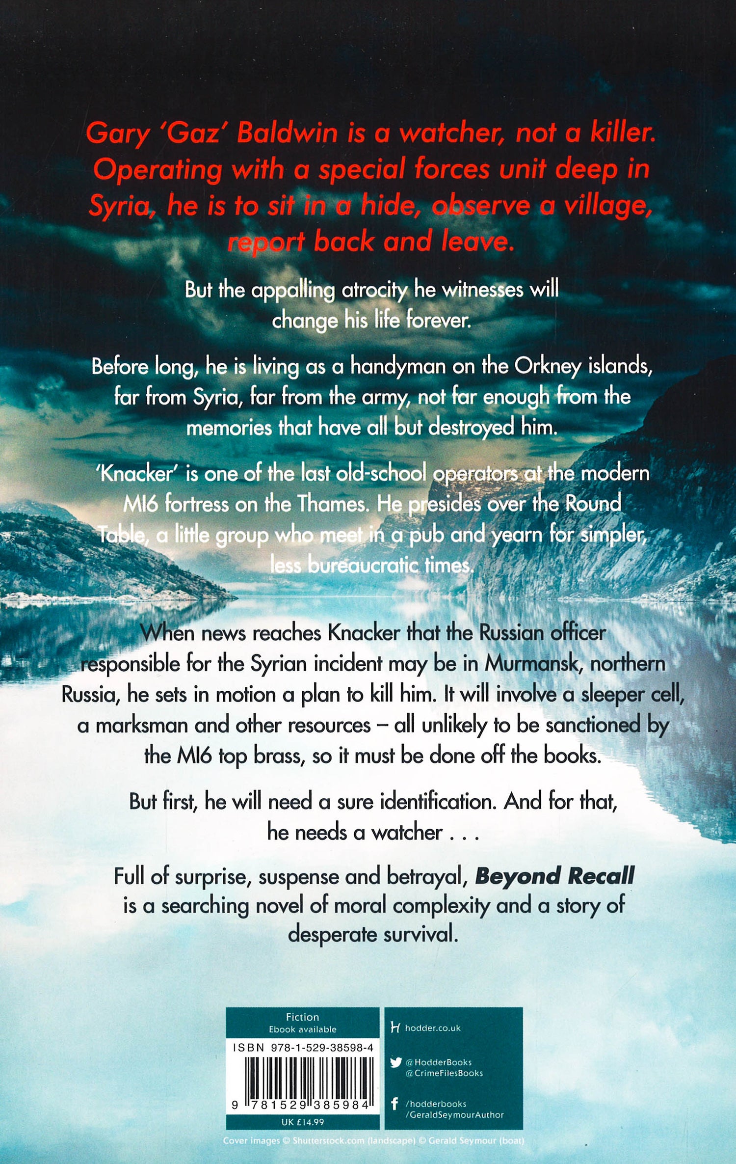 A novel displaying all the author's many strengths, from his John le Carre-like ability to portray the intelligence world from top to bottom, to its line up of memorable supporting characters' The Sunday Times'Depicts the desperate world of an agent adrift behind enemy lines as few others can' The Times'Highly enjoyable' Guardian***He had been to the limit. Then they sent him further.Gary - 'Gaz' - Baldwin is a watcher, not a killer. Operating with a special forces unit deep in Syria, he is to sit in a hide, observe a village, report back and leave.But the appalling atrocity he witnesses will change his life forever.Before long, he is living as a handyman on the Orkney islands, far from Syria, far from the army, not far enough from the memories that have all but destroyed him.'Knacker' is one of the last old-school operators at the modern MI6 fortress on the Thames. He presides over the Round Table, a little group who meet in a pub and yearn for simpler, less bureaucratic times.When news reaches Knacker that the Russian officer responsible for the Syrian incident may be in Murmansk, northern Russia, he sets in motion a plan to kill him. It will involve a sleeper cell, a marksman and other resources - all unlikely to be sanctioned by the MI6 top brass, so it must be done off the books.But first, he will need a sure identification. And for that, he needs a watcher...Full of surprise, suspense and betrayal, Beyond Recall is a searching novel of moral complexity and a story of desperate survival.