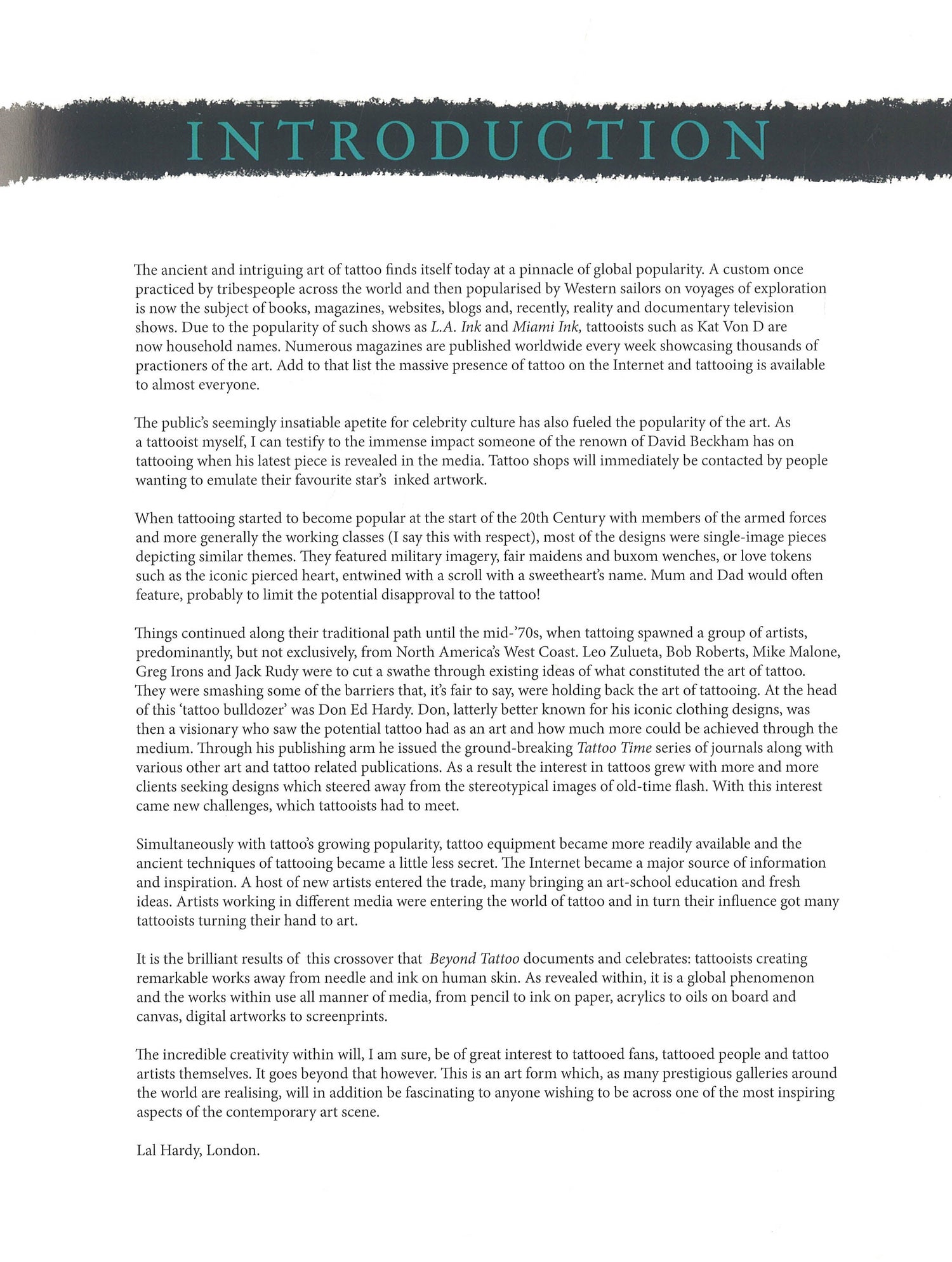 A look at the crossover between fine art and tattooing Fine artists are increasingly practicing the art of tattoo while tattoo artists are exercising their skills beyond skin; both are taking the visceral aesthetic of the tattoo underworld with them to create some astounding art pieces. A new art movement in its own right, this fantastic collection of amazing, visceral imagery will appeal to anyone into the contemporary art scene, but also to the vast armies of people getting inked. More than 50 world-class artists from the United States., Europe, Japan, Brazil, Indonesia, and the UK are represented, each with a detailed biography and discussion of their work.