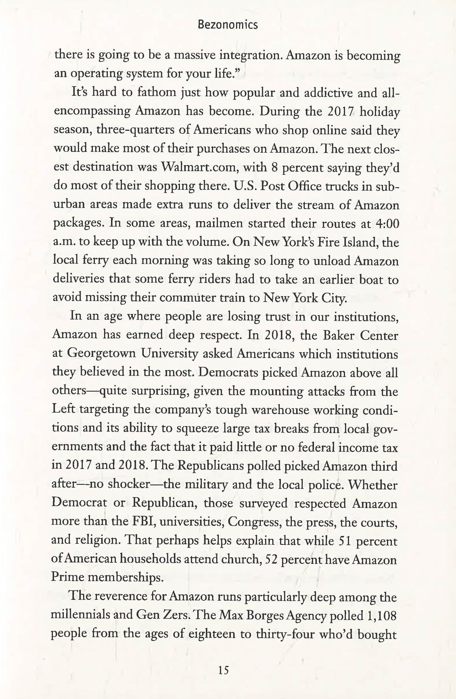 Based on unprecedented behind-the-scenes reporting from 150 sources inside and outside of Amazon, Bezonomics unveils the underlying principles Jeff Bezos uses to achieve his dominance—customer obsession, extreme innovation, and long-term management, all supported by artificial intelligence—and shows how these are being borrowed and replicated by companies across the United States, in China, and elsewhere. Including tips for Amazon-proofing your business, Bezonomics answers the fundamental question: How are Amazon and its imitators affecting the way we live, and what can we learn from them?