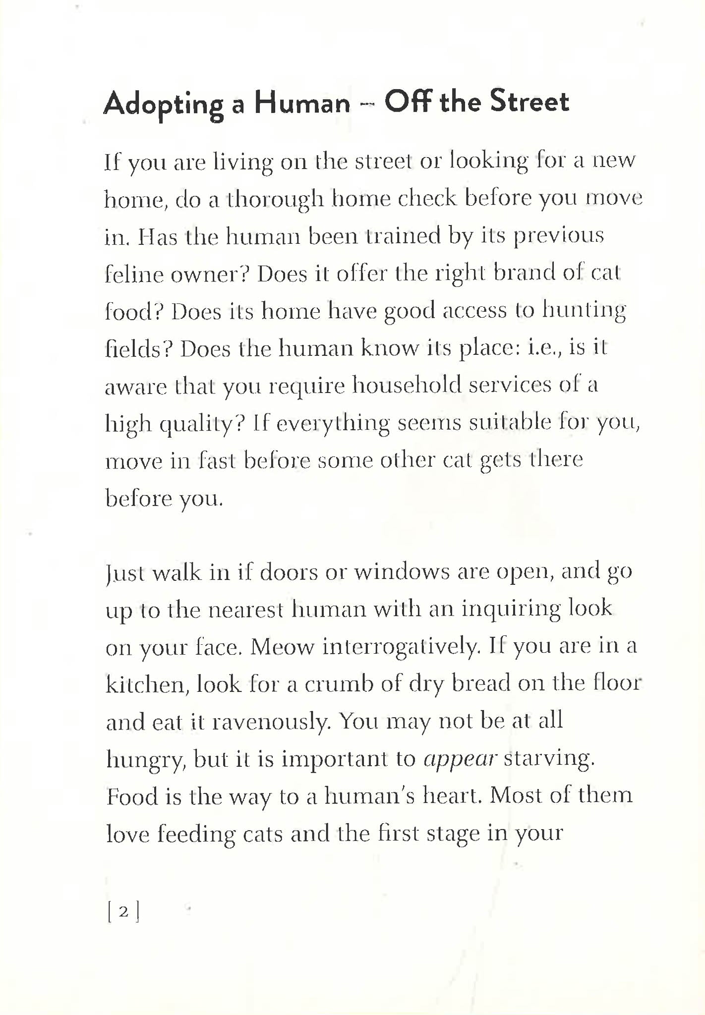 'Do you need a human in the first place? If you do, do not adopt a human on impulse. You may not get the right one for your lifestyle.'