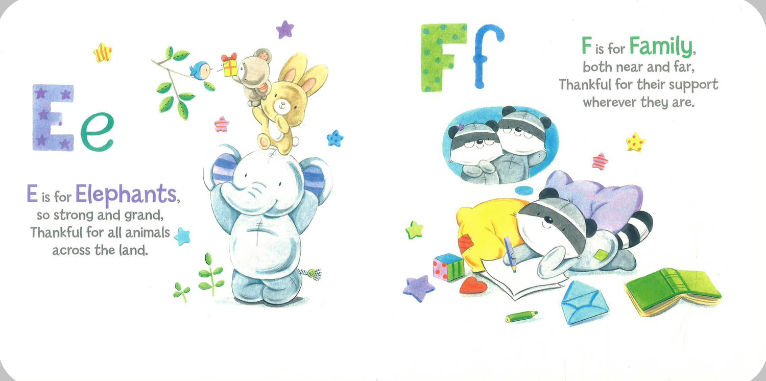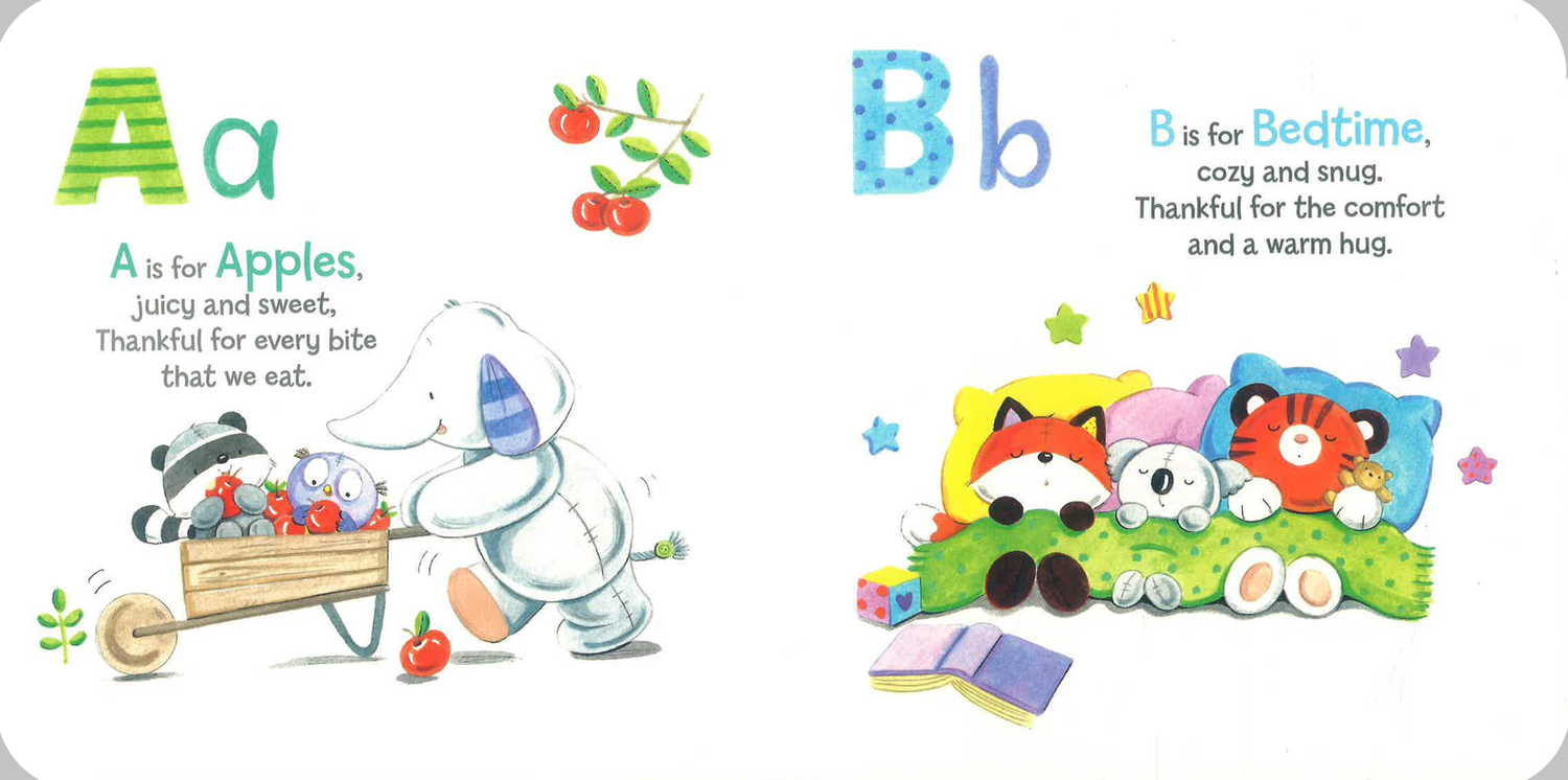 ABC's of Thankfulness is a charming padded board book that introduces young readers to the alphabet while instilling the importance of gratitude. Each letter highlights a meaningful word or concept to be thankful for. With colorful illustrations and simple, heartwarming text, this book is perfect for teaching toddlers and preschoolers about appreciation and positivity. The padded cover and sturdy board pages make it ideal for little hands, ensuring durability for countless readings. Whether shared during story time or given as a gift, ABC's of Thankfulness is a delightful way to nurture gratitude in young hearts.