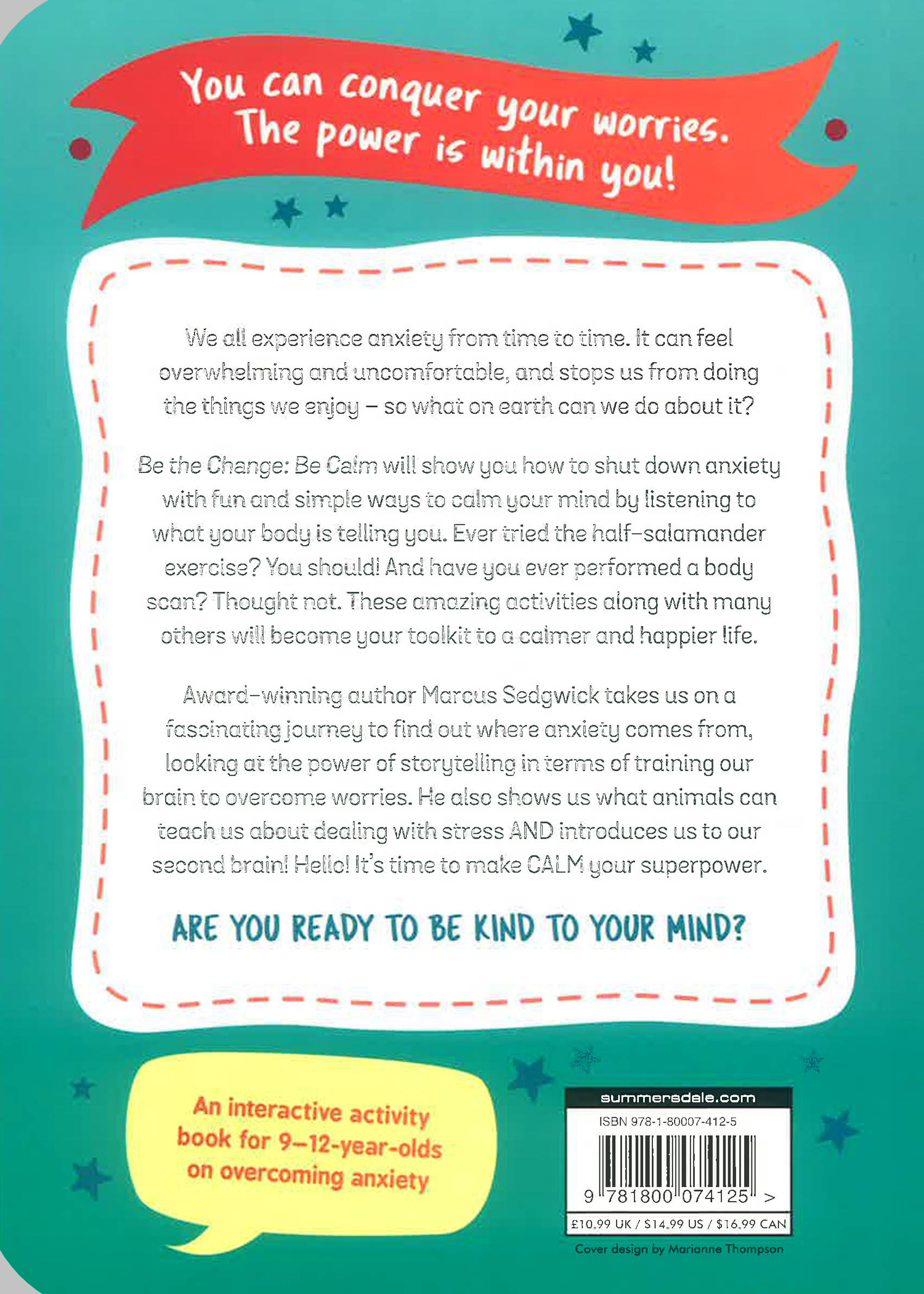 Be the Change: Be Calm will show you how to shut down anxiety with fun and simple ways to calm your mind by listening to what your body is telling you. Ever tried the half-salamander exercise? You should! And have you ever performed a body scan? Thought not. These amazing activities along with many others will become your toolkit to a calmer and happier life.