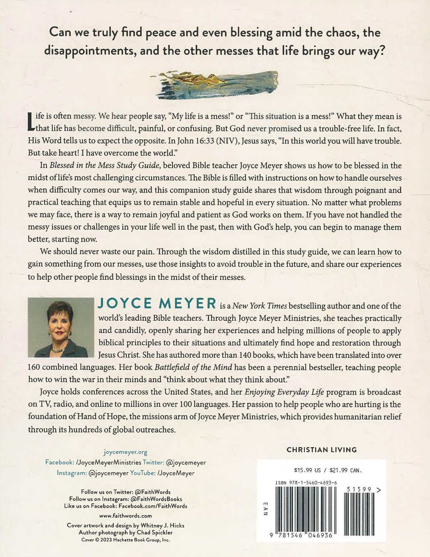 In Blessed in the Mess Study Guide, beloved Bible teacher Joyce Meyer shows us how to be blessed in the midst of life’s most challenging circumstances. The Bible is filled with instructions on how to handle ourselves when difficulty comes our way, and this companion study guide shares that wisdom through poignant and practical teaching that equips us to remain stable and hopeful in every situation. No matter what problems we may face, there is a way to remain joyful and patient as God works on them. If you have not handled the messy issues or challenges in your life well in the past, then with God's help, you can begin to manage them better, starting now.