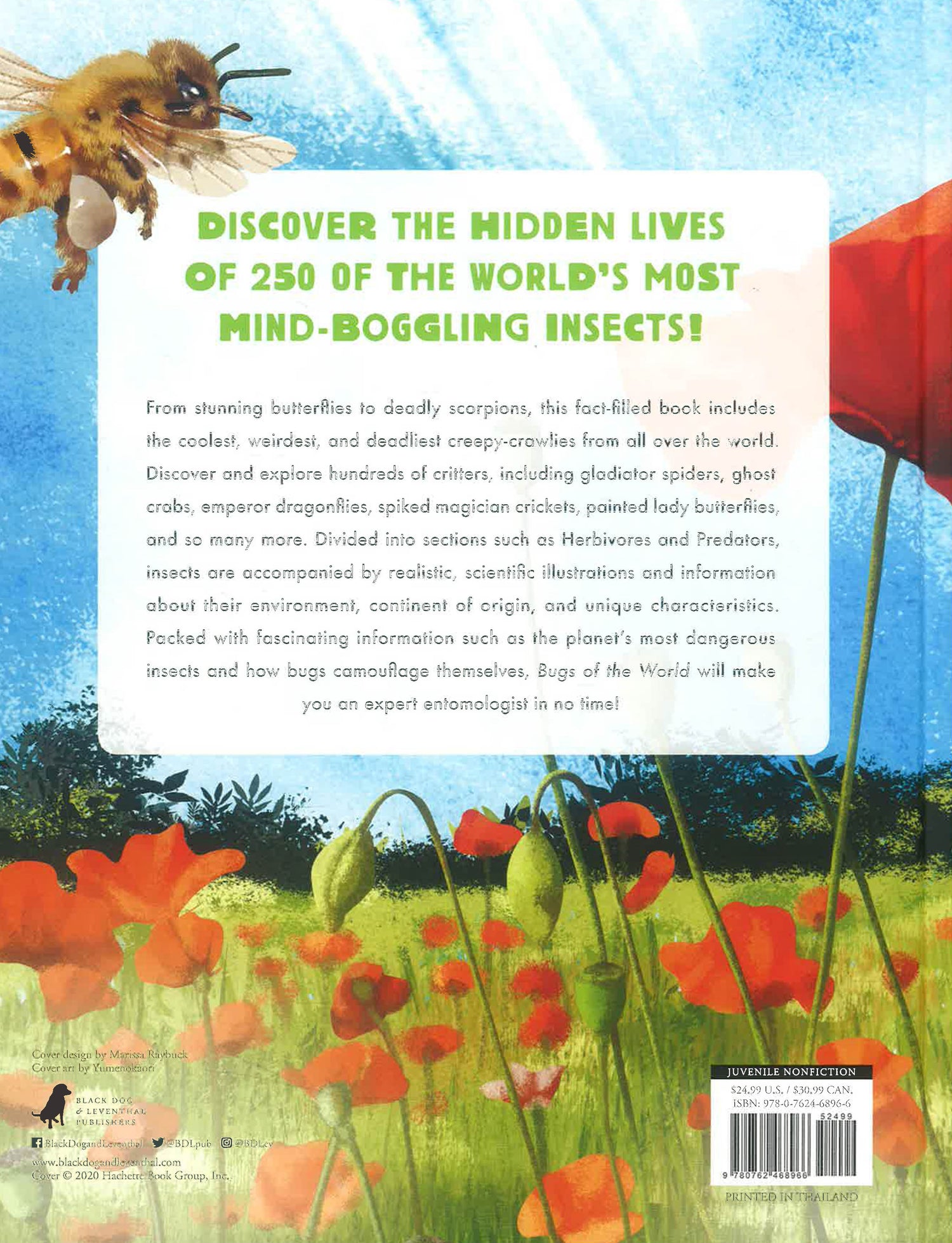 This gorgeously illustrated book reveals the hidden world of some of the most mind-boggling insects. Divided into categorical sections like herbivores and predators, Bugs of the World includes bugs, beetles, wasps, bees, ants, caterpillars, butterflies, dragonflies, spiders, flies, crickets and grasshoppers, centipedes and millipedes, and more. Each of the 250 insects featured is accompanied by beautiful illustrations and facts about the creature, including its common name and scientific name, its size, its continent of origin, and a brief description of its unique characteristics. Kids will also learn about the different life cycles of insects, why they are important to ecology and our world, the planet's most dangerous insects, how bugs camouflage themselves, and so much more.