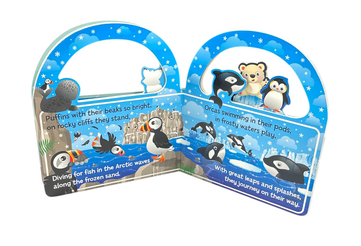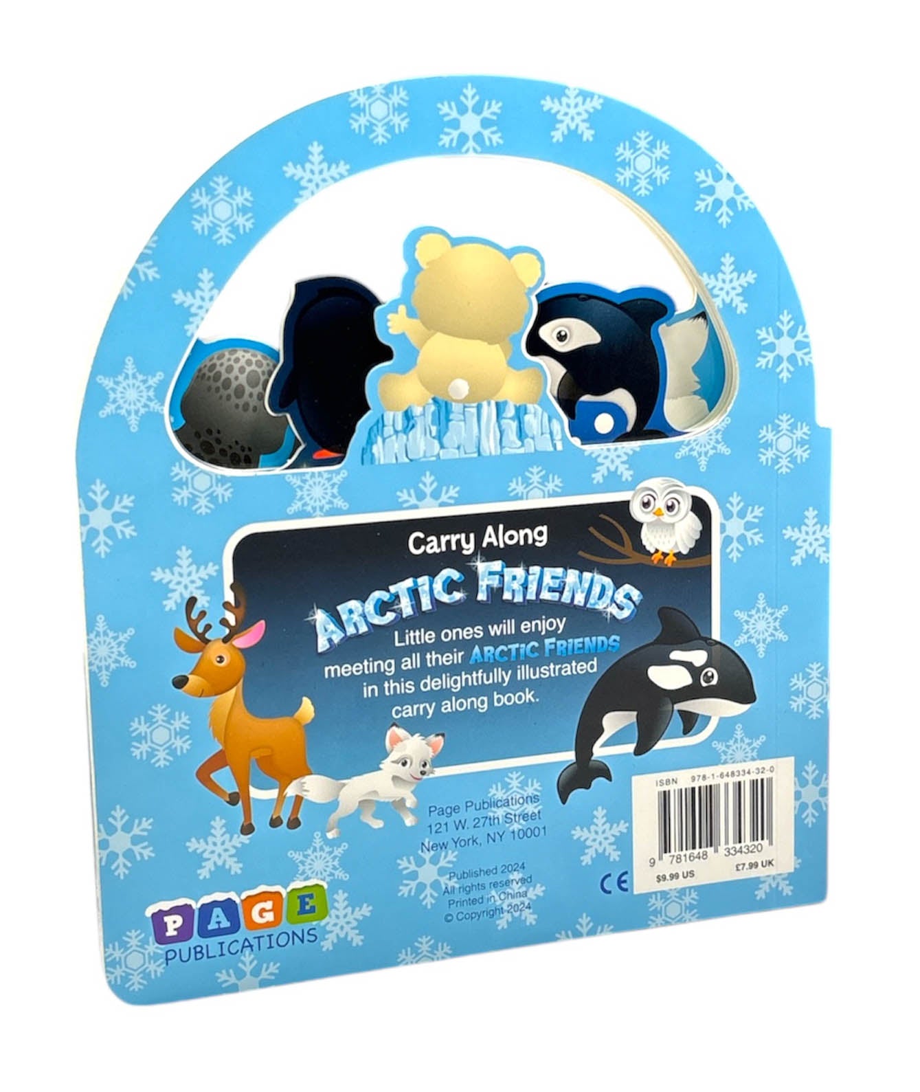 "Carry Along Arctic Friends" is a captivating and portable board book that introduces young children to the fascinating world of Arctic animals. This engaging book features a variety of Arctic creatures, each brought to life with vibrant illustrations and simple, descriptive text. Each page highlights different Arctic friends, inviting children to explore the icy habitats while developing early language and reading skills. The convenient carry-along handle makes it perfect for travel and on-the-go reading. This sturdy board book is an ideal addition to any child's early learning library, fostering a love for wildlife and nature in the polar regions.