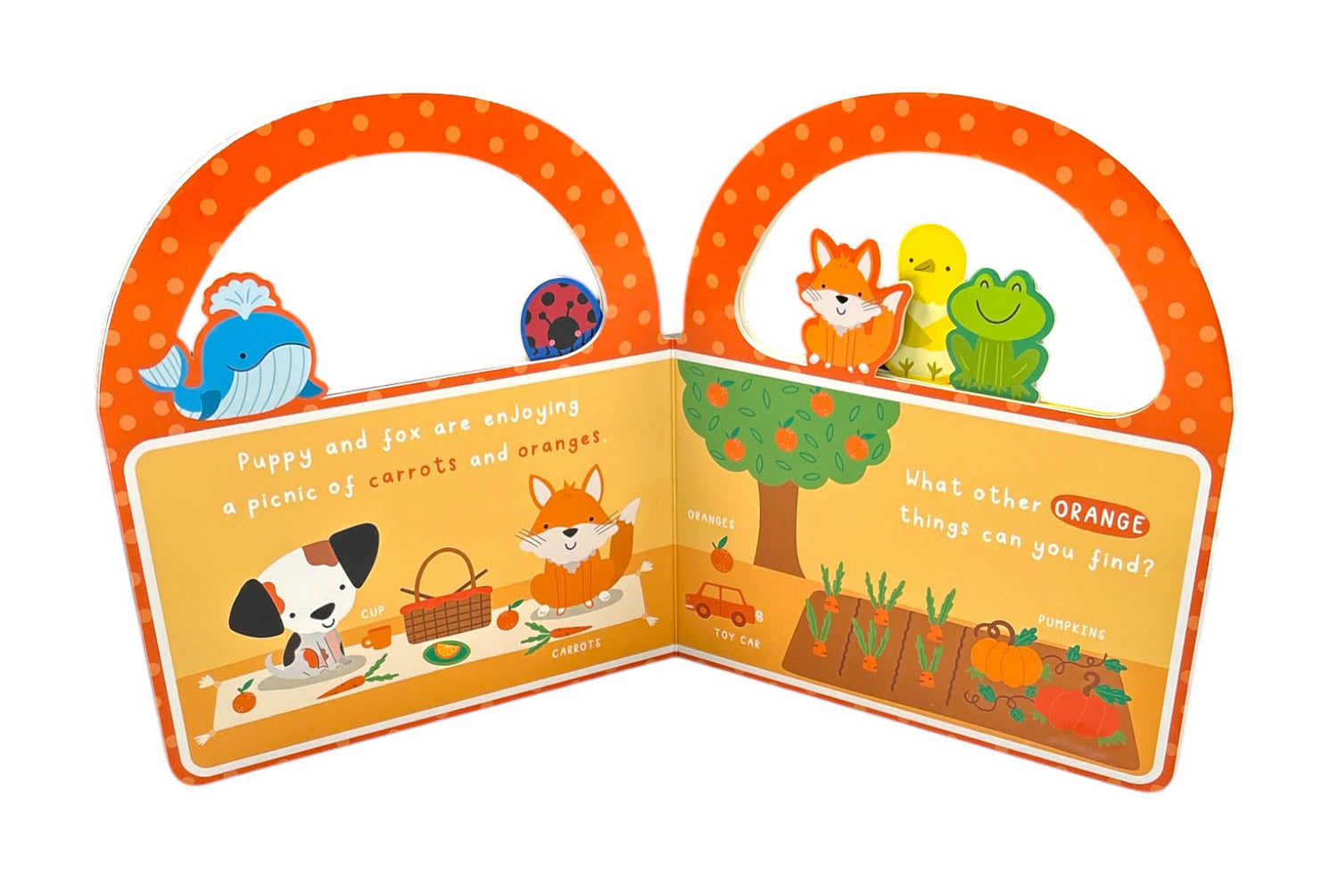 "Carry Along Puppy’s First Red Yellow Blue Book" is an engaging and portable board book designed to introduce young children to the concept of colors through the playful adventures of an adorable puppy. This delightful book features vibrant illustrations and simple, descriptive text that highlight different colors, such as red, yellow, and blue, within the context of the puppy's explorations. Each page invites children to learn about colors while developing early language and cognitive skills. The convenient carry-along handle makes it perfect for travel and on-the-go learning. This sturdy board book is an ideal addition to any child's early learning library, fostering curiosity and foundational color recognition skills.