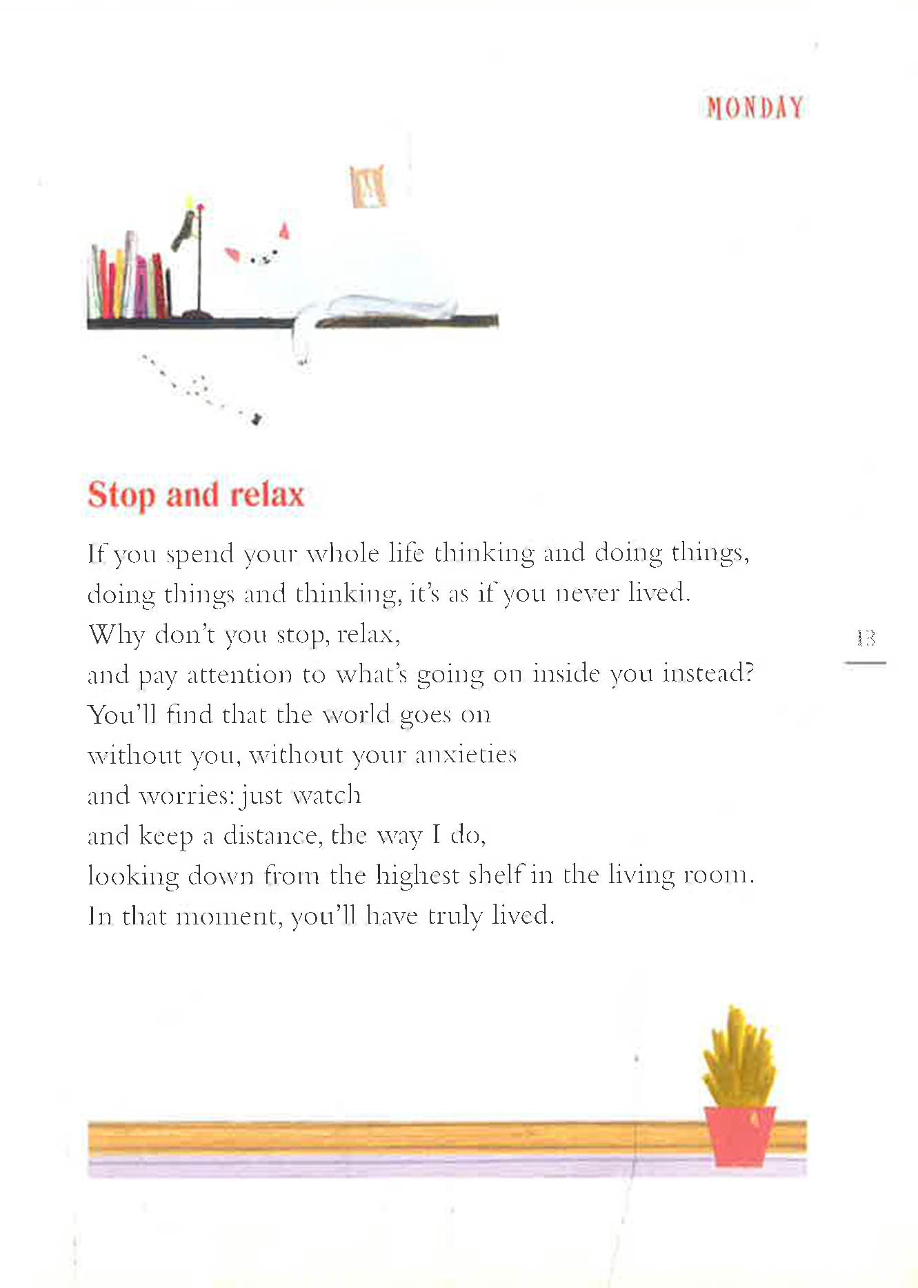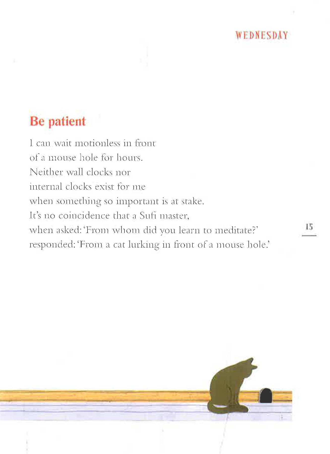 We cats know the art of living. We eat when we're hungry, sleep when we're tired. Sitting for hours outside a mouse hole has taught us patience. Staring at an aquarium has brought us meditation. And we know how to please ourselves.