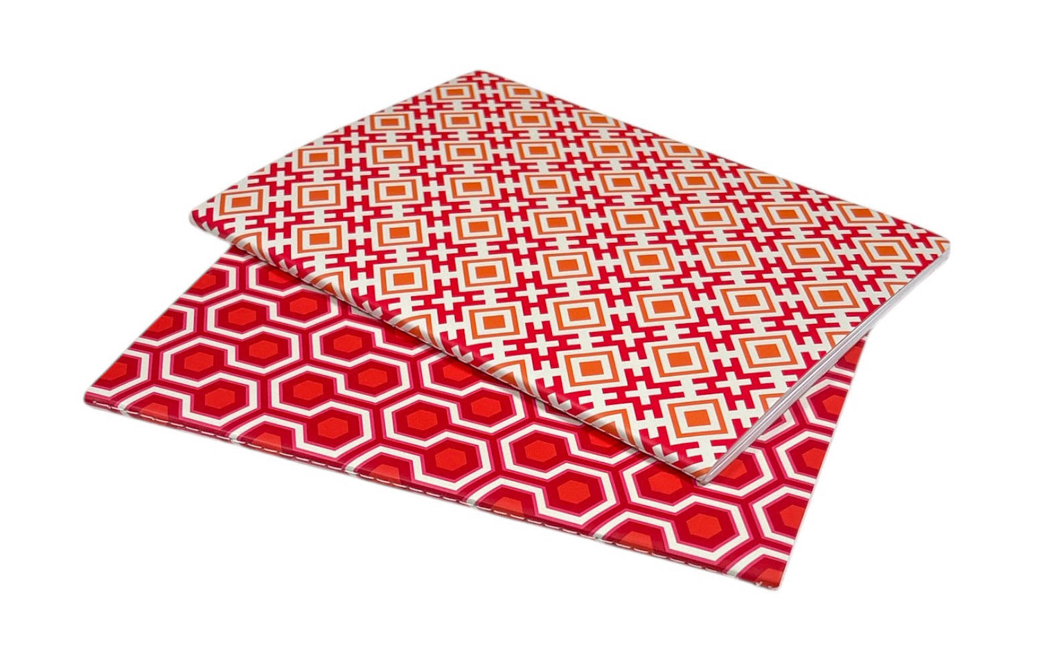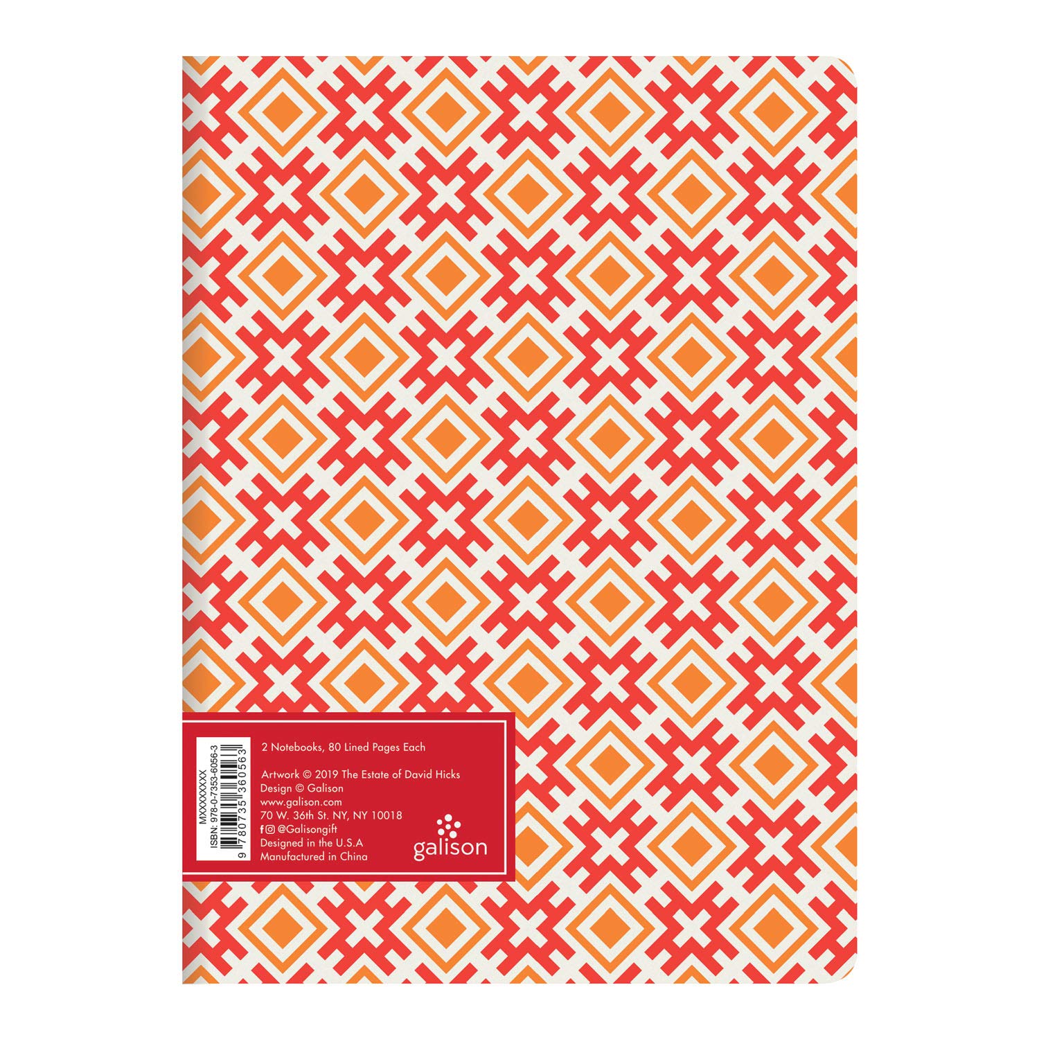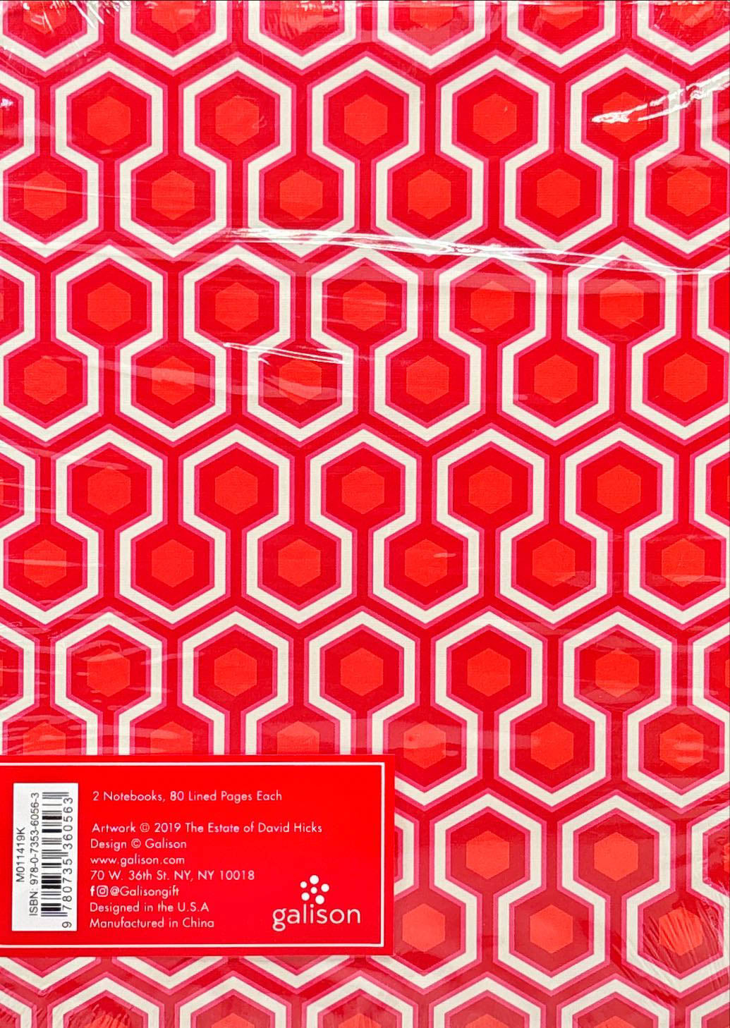 David Nightingale Hicks was an English interior decorator and designer, noted for using bold colors, mixing antique and modern furnishings, and contemporary art for his famous clientele. The David Hicks Reds Writer's Notebook Set includes two 80-page layflat notebooks each featuring signature Hicksonian patterns in a red palette. Galison Writer's Notebooks are perfect for writing and note-taking on-the-go.