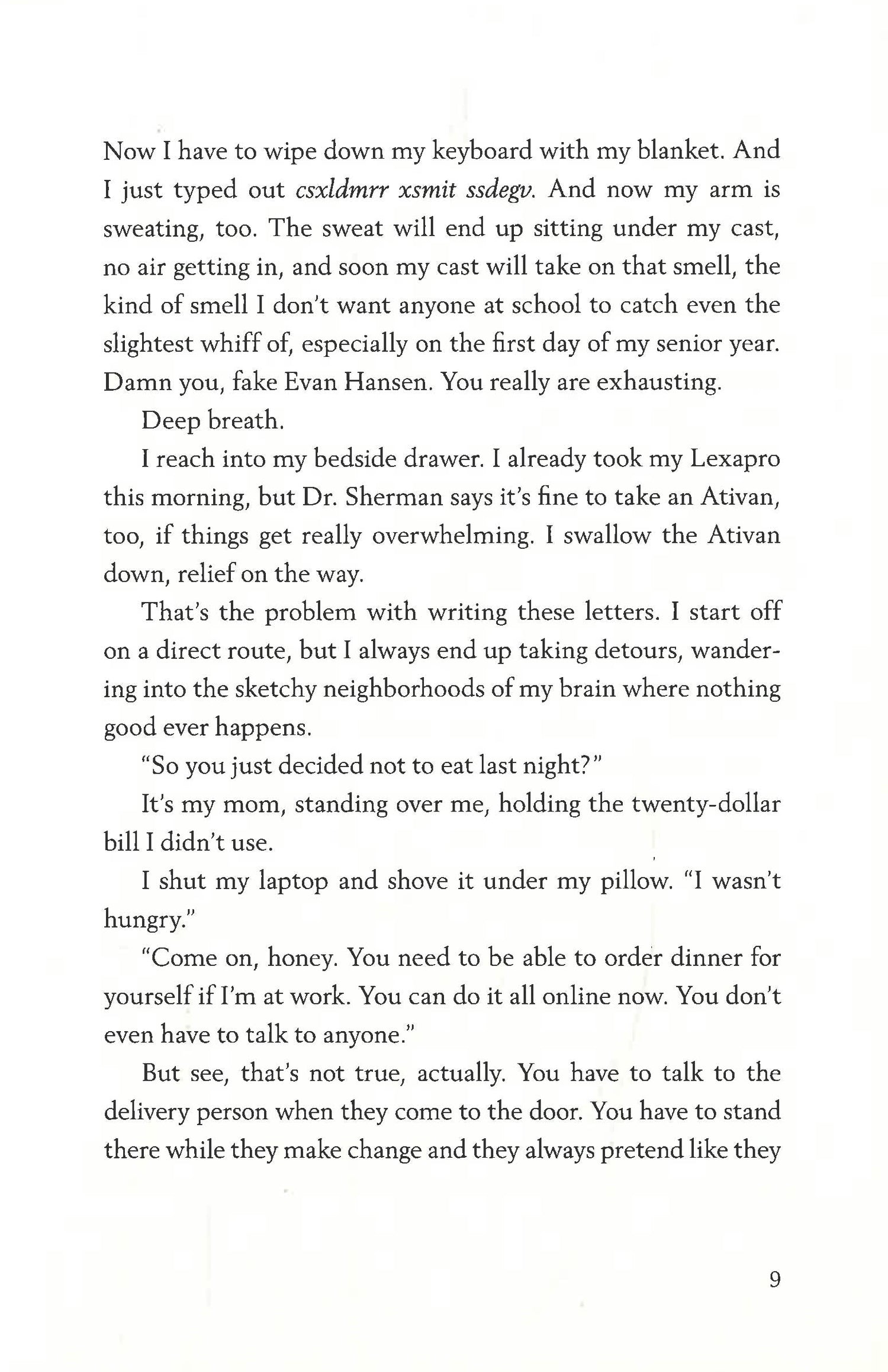 No longer tangled in his once-incapacitating anxiety, this new Evan has a purpose. And a website. He's confident. He's a viral phenomenon. Every day is amazing. Until everything is in danger of unraveling and he comes face to face with his greatest obstacle: himself.
